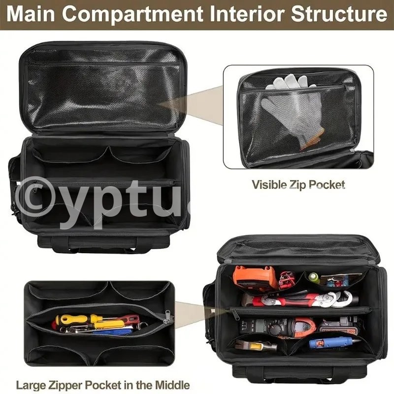 14-Inch Heavy Duty Tool Bag Storage Bag with Non-Slip Base, Multipurpose Organizer for, Carpenters Ers Portable