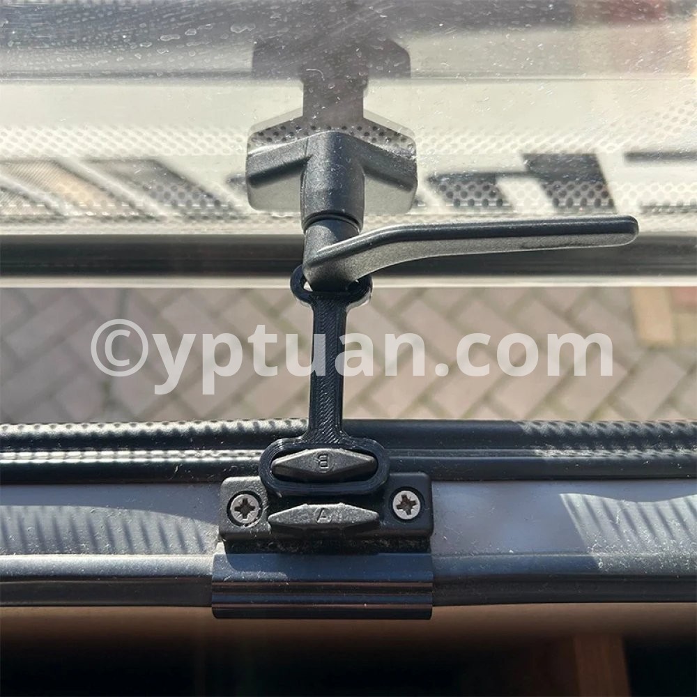Caravan Motorhome Window Ventilation Stay for PolyPlastic Windows The idea of the unit is to open the caravan window to allow for ventilation while stopping the window from flapping when the opening is too small for the window rods to hold it firm. I have included photographs to show how they work as well as a photograph to show the gap to which the window is left open. The stay has been made to fit PolyPlastic Caravan windows. Please use two stays per window. Packing list 2pcs