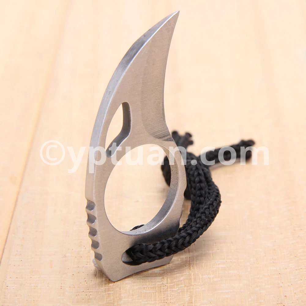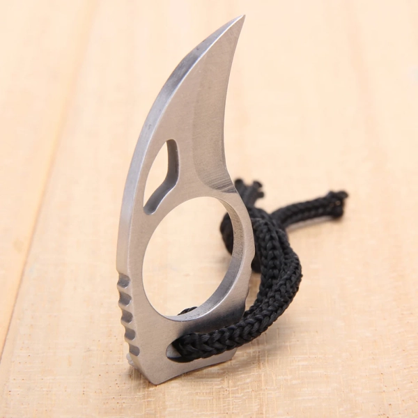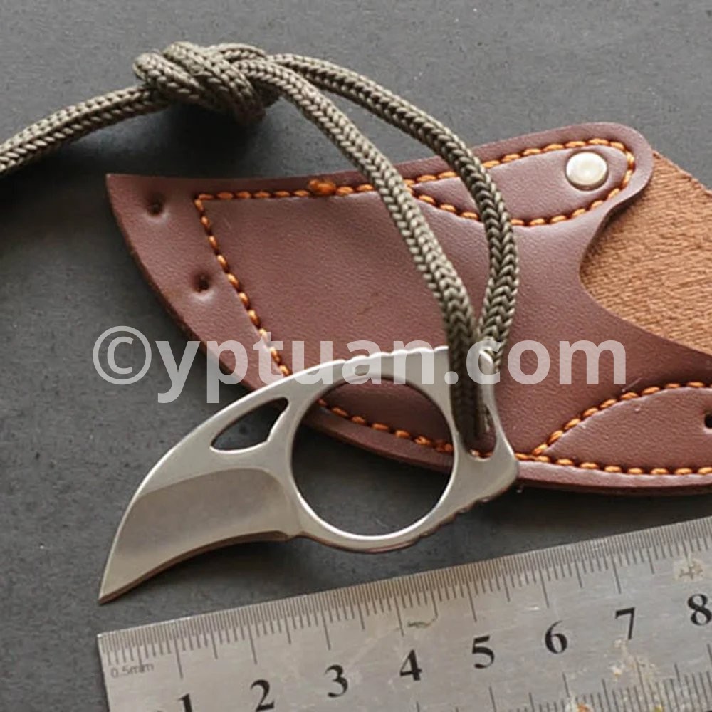 This is a high quality finger claw knife with leather sheath. Small size and lightweight, convenient to store and carry. There is a ring that you can put your finger in, and hold it tightly, never hurt yourself during use. Perfect survival tool for outdoor sports such as camping, sailing, diving, fishing and hunting.