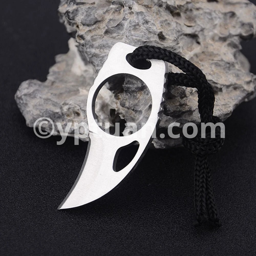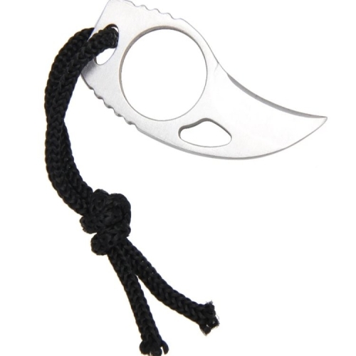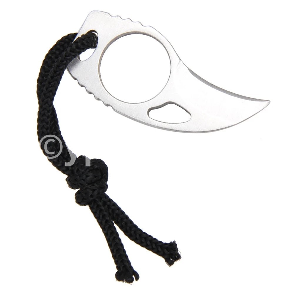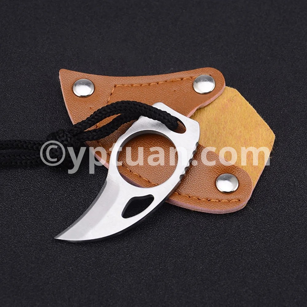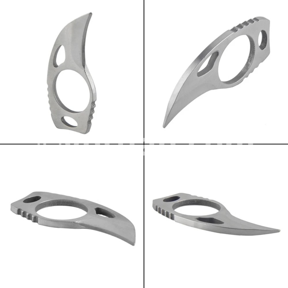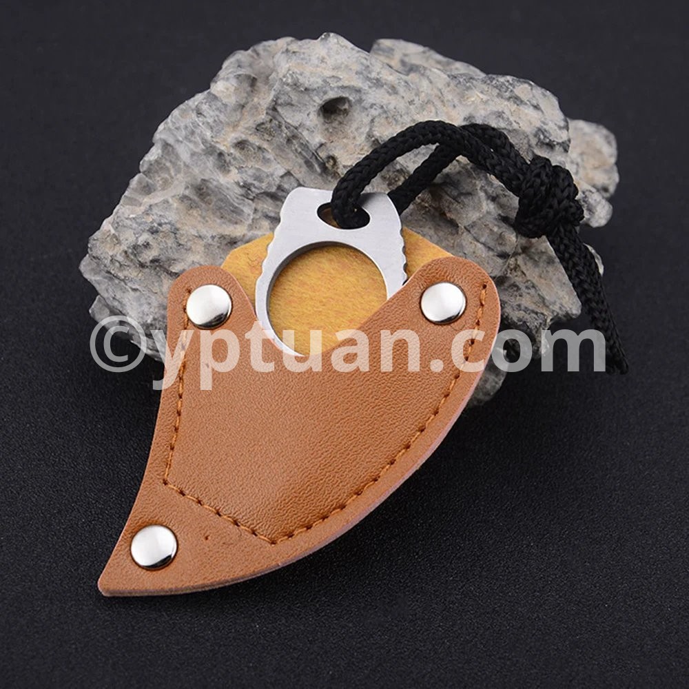 Outdoor Camping Carabiner Survival Finger Claw Knife Hook Fixed Ring Card EDC Tool Mini Pocket Knife with Leather Sheath