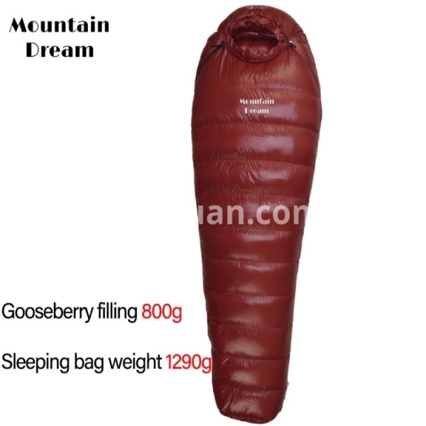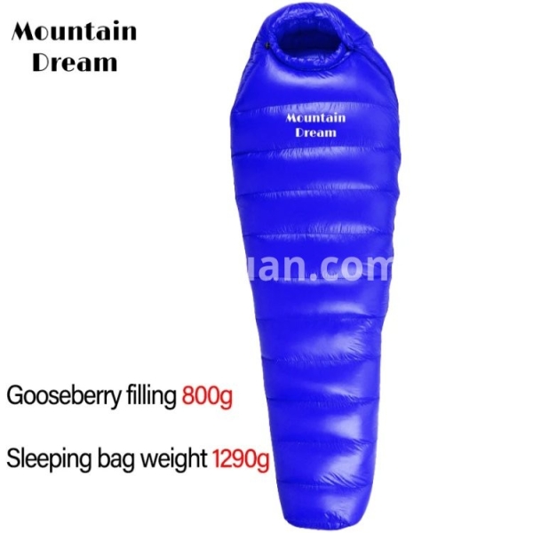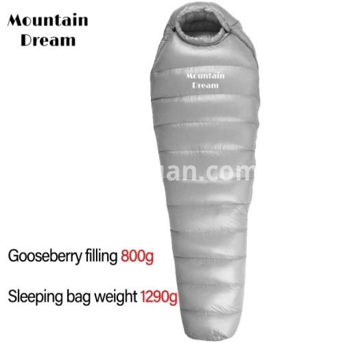 The filling capacity of goose down is 800 grams, and the total weight of the sleeping bag is 1290 grams.