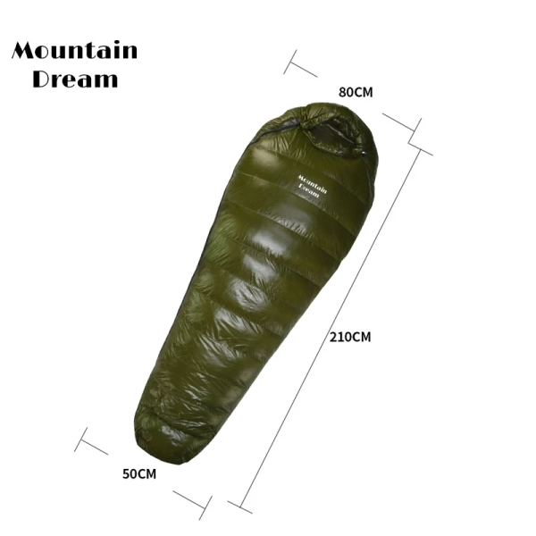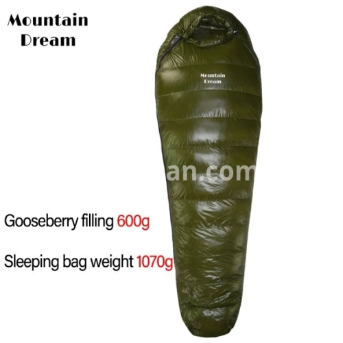 The filling capacity of goose down is 600 grams, and the total weight of the sleeping bag is 1070 grams.