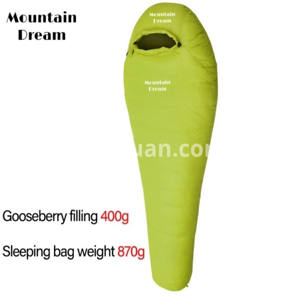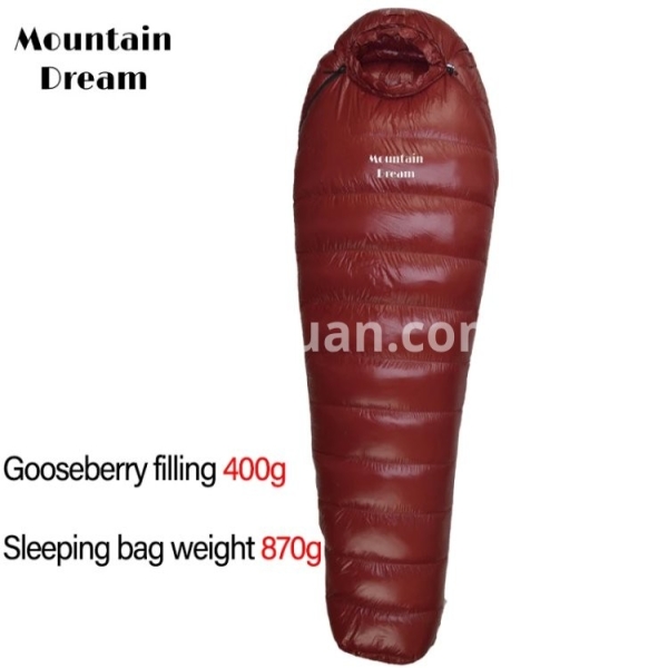 The filling capacity of goose down is 400 grams, and the total weight of the sleeping bag is 870 grams.