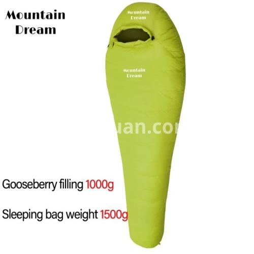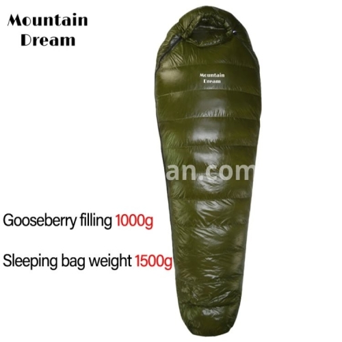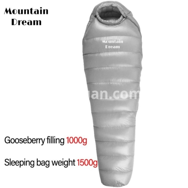 The filling capacity of goose down is 1000 grams, and the total weight of the sleeping bag is 1500 grams.