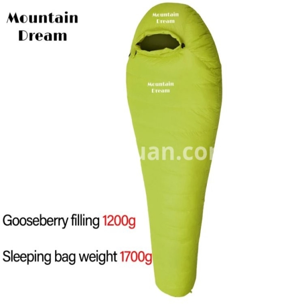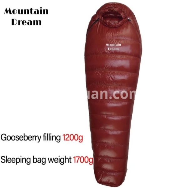 The filling capacity of goose down is 1200 grams, and the total weight of the sleeping bag is 1700 grams.