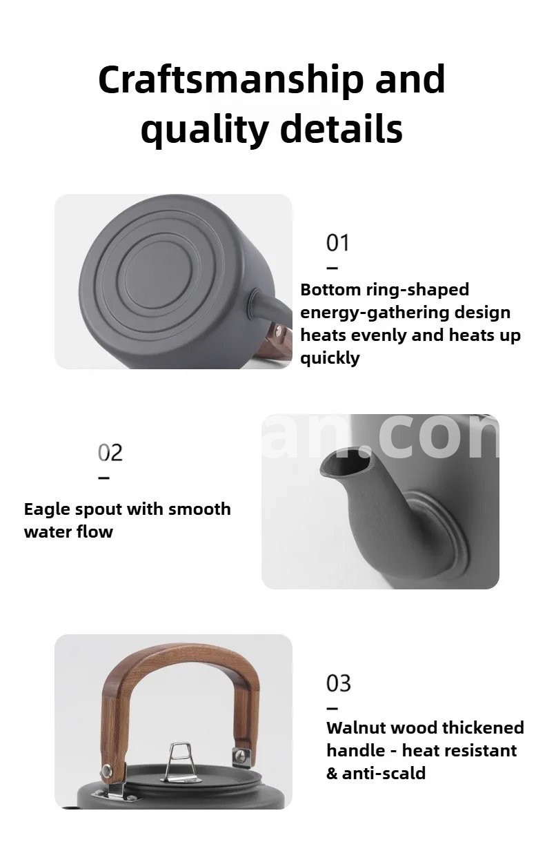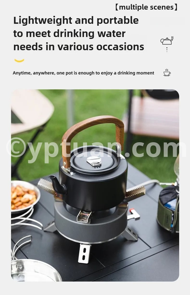 Crafted from lightweight aluminum alloy, this camping kettle ensures durability without sacrificing portability for your outdoor adventures.