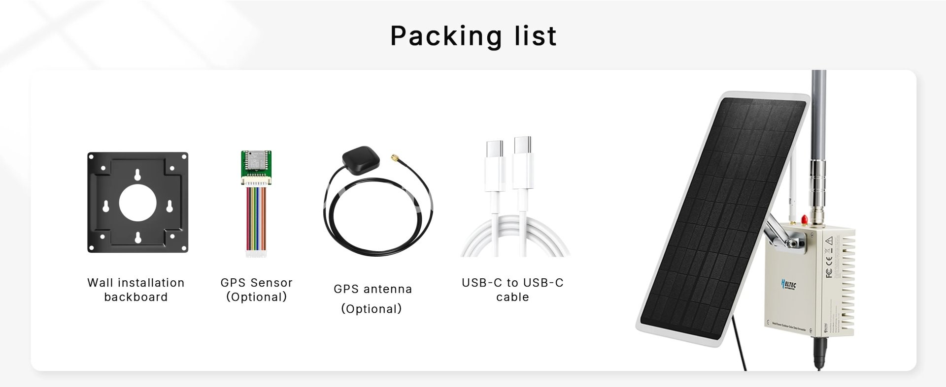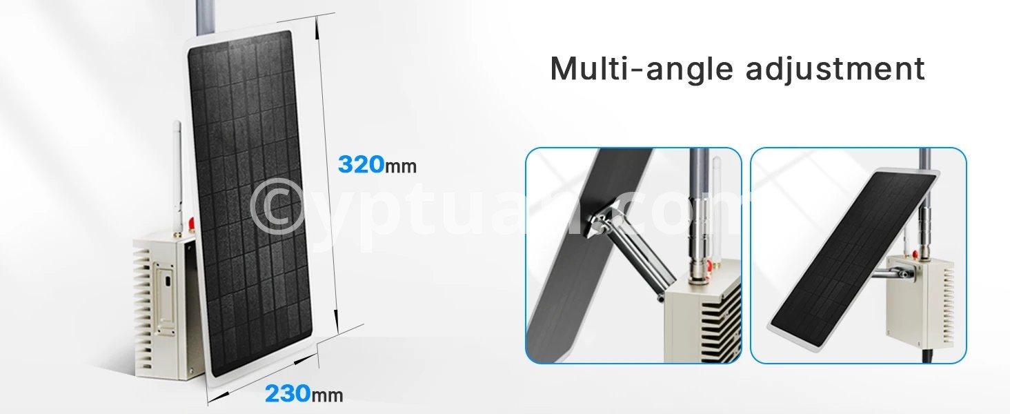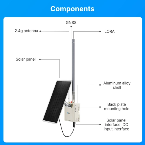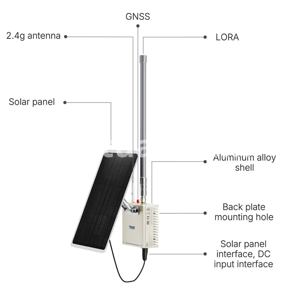 ●Professional BMS Performance, features comprehensive protection including overcharge/over-discharge/short-circuit/over-temperature safeguards. ●Supports 18V Solar Panel & PD3.0 Input. ●Integrated 3*2800mAh High-Capacity Lithium Battery. ●Dual Support for LoRa & Bluetooth. ●External SMA Antenna Compatible. ●Excellent Low-Power Efficiency. ●Wide-Temperature Battery (-20°C to 60°C). ●IP65 Waterproof Enclosure. ●Easy installation, supports pole mounting and wall mounting.