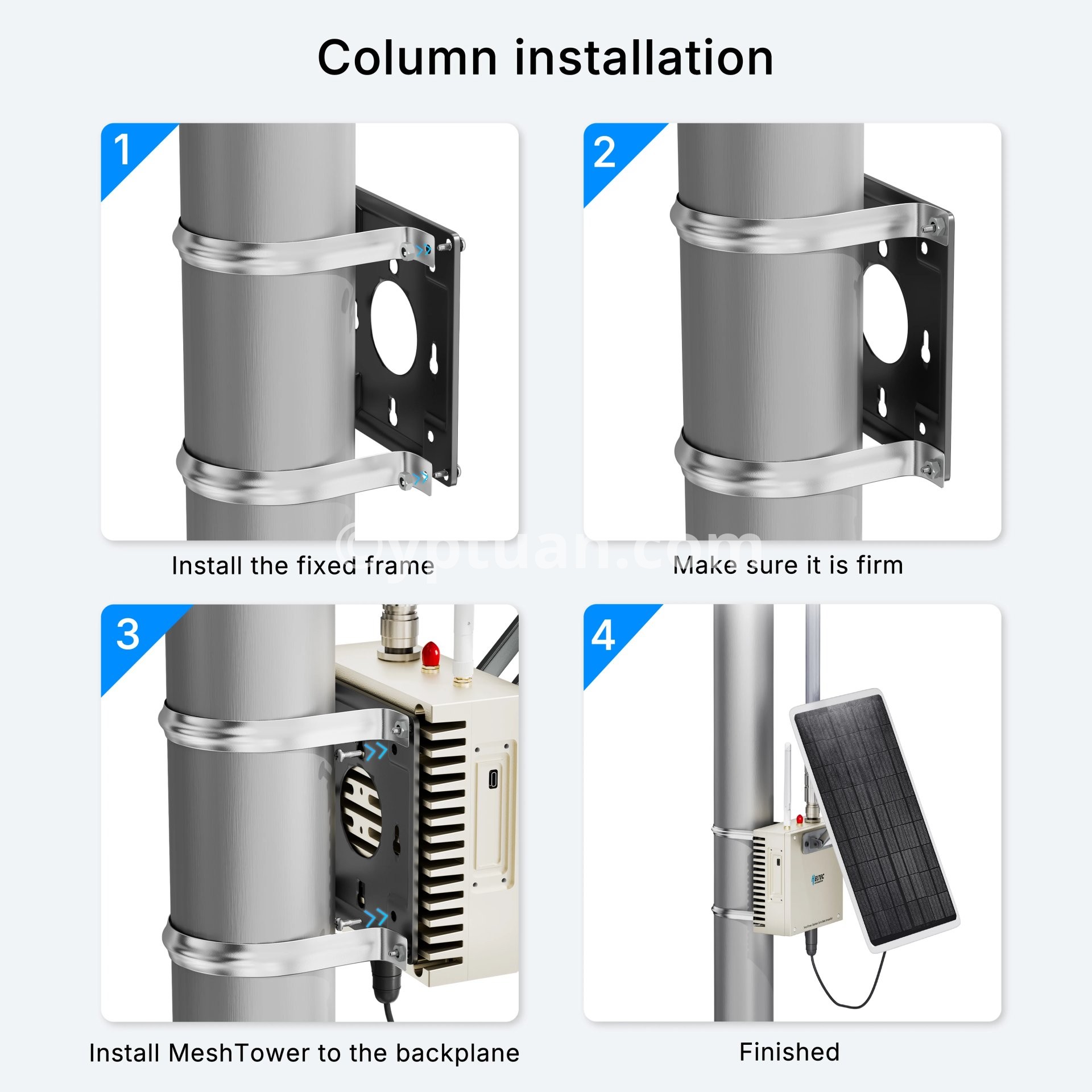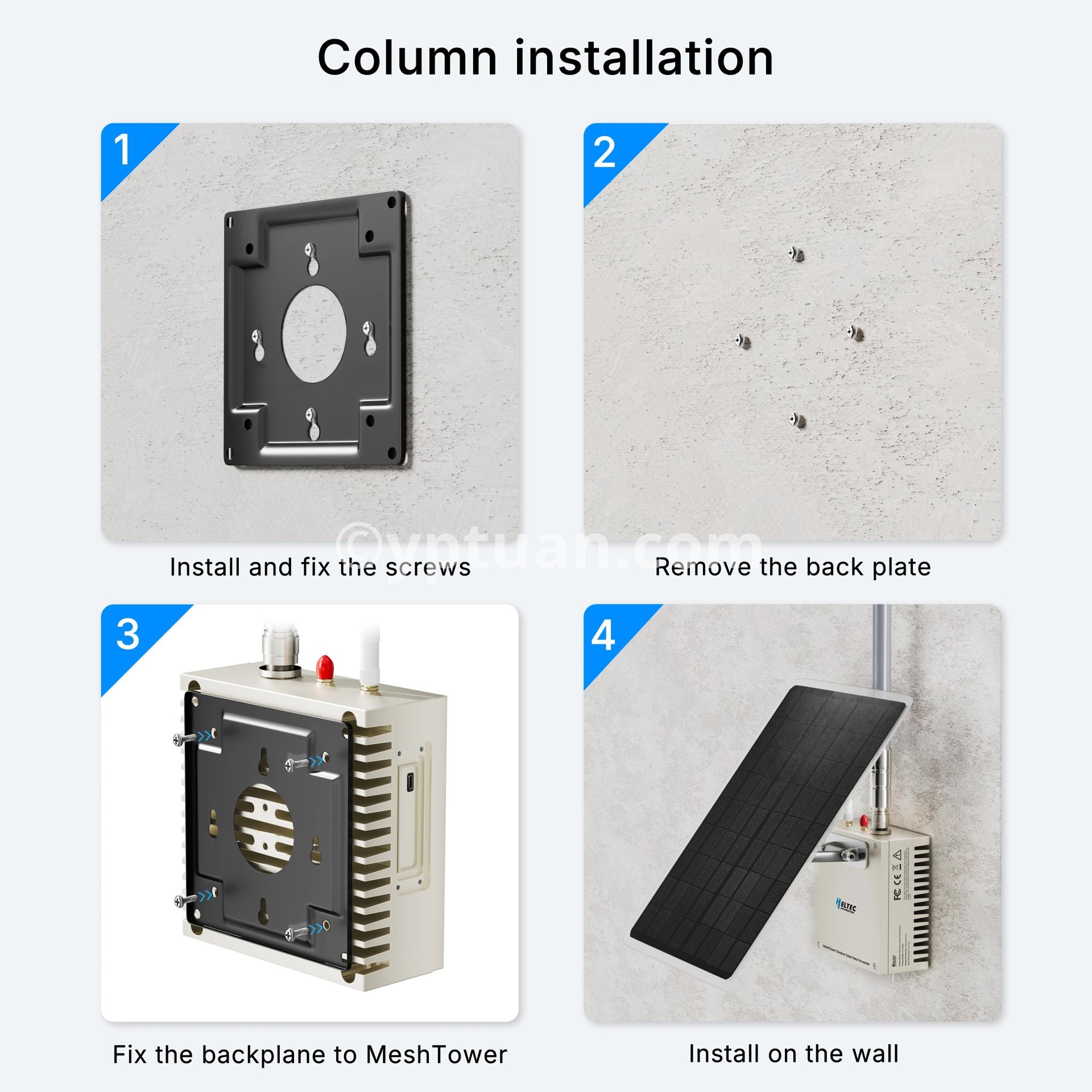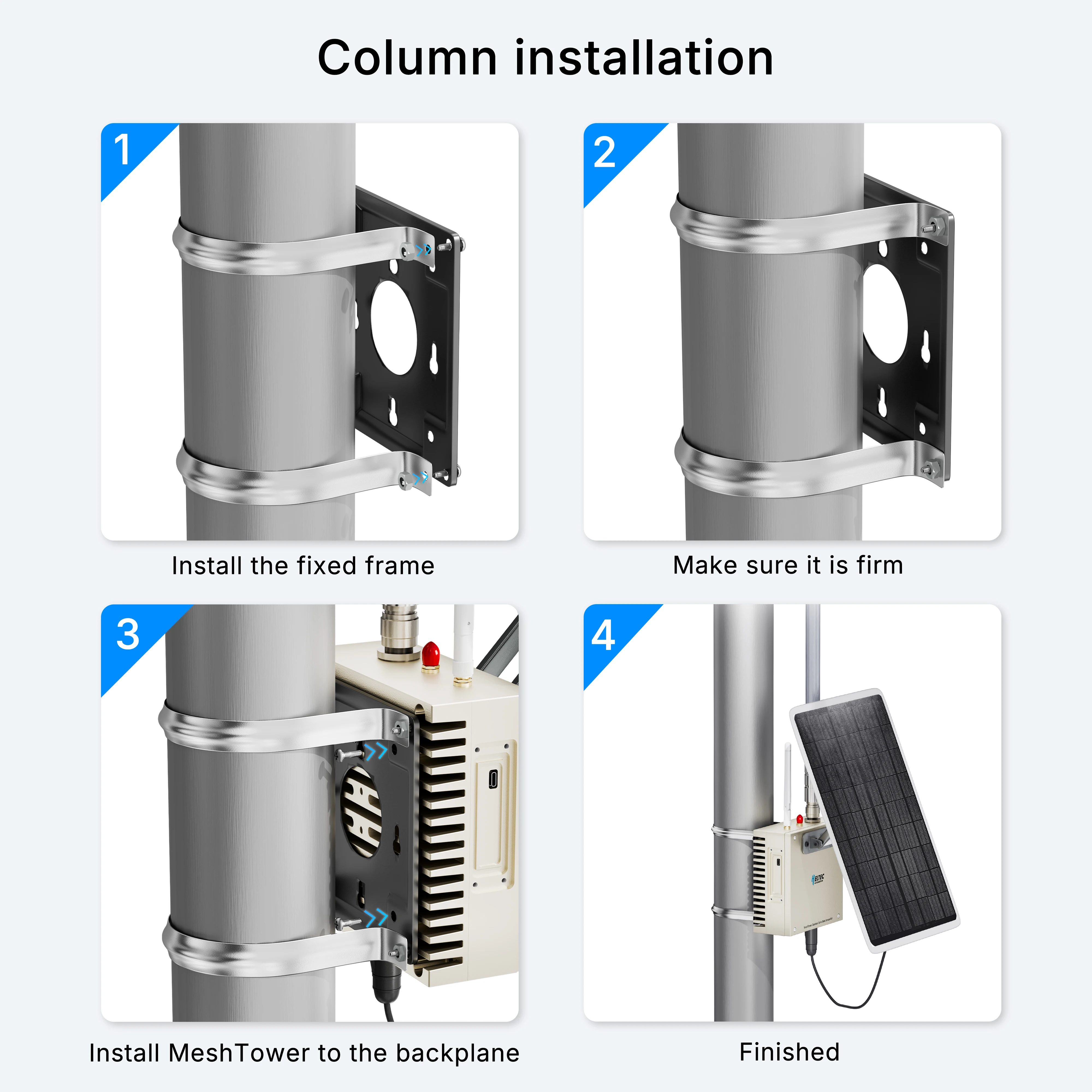 MeshTower is a solar-powered outdoor communication system built on MeshSolar technology,featuring an integrated 18V solar panel and 3×2800mAh lithium battery for sustained operation. With Bluetooth + LoRa dual-mode connectivity and SMA antenna support, it ensures robust signal coverage. Housed in an IP65-rated waterproof enclosure and designed for -20°C to 60°C environments, it thrives in harsh conditions. Offering pole/wall-mount flexibility, it’s ideal for Meshtastic networks, remote monitoring, and off-grid communication—delivering solar endurance, industrial resilience, and plug-and-play deployment.