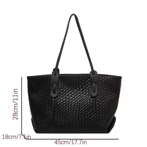Retro Fashion Classic Solid Color Pu Woven Rhombic Lattice Double Handle Single Shoulder Large Capacity Tote Bag 250806