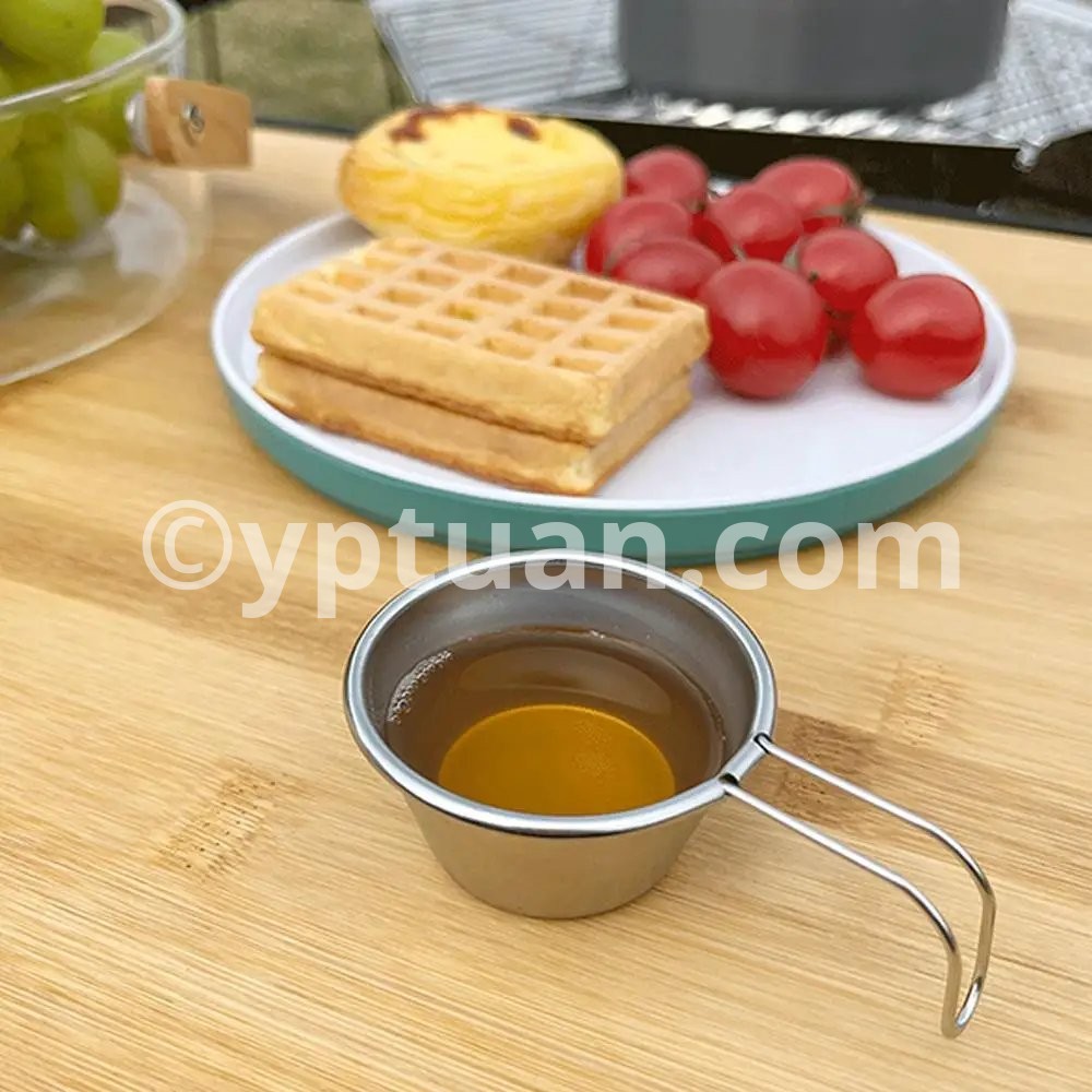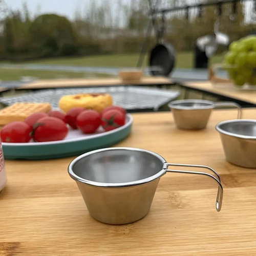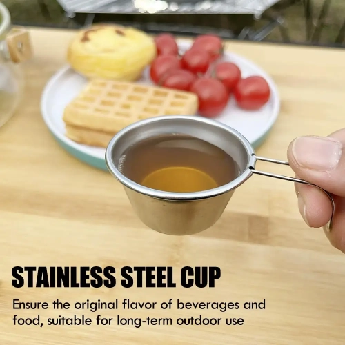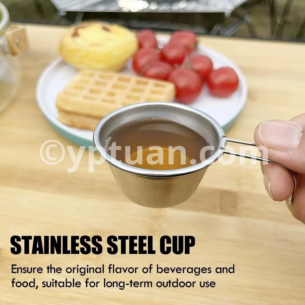 3-in-1 Camping Utensil Set, 304 Stainless Steel Mini Cup, Sauce & Condiment Container for Outdoor BBQ Hiking