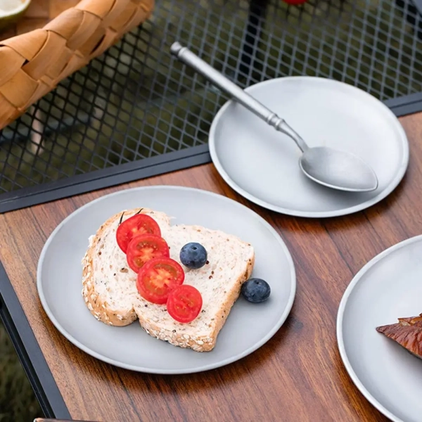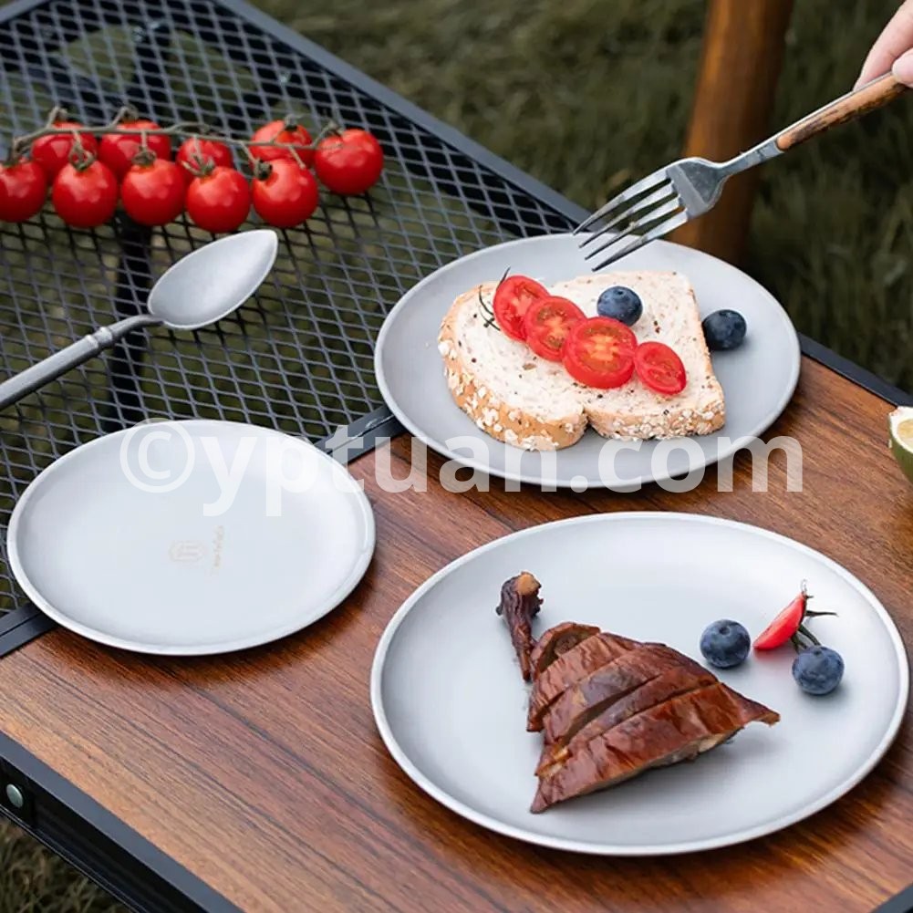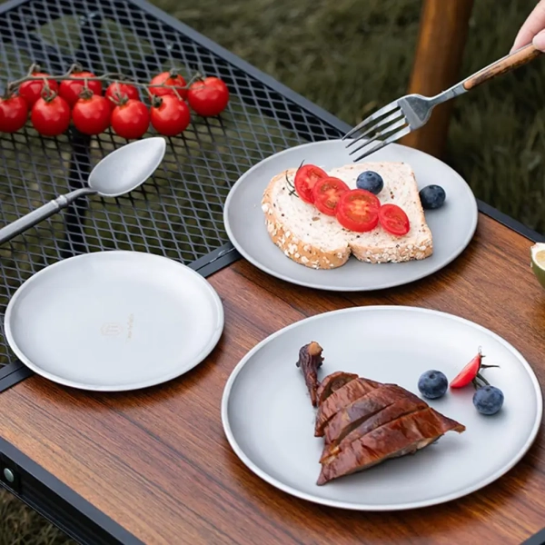 1. This titanium plate has a smooth edge design that feels gentle on your hands and mouth, making it easy to hold and use without any sharp edges, so you can enjoy meals comfortably indoors or outdoors.
