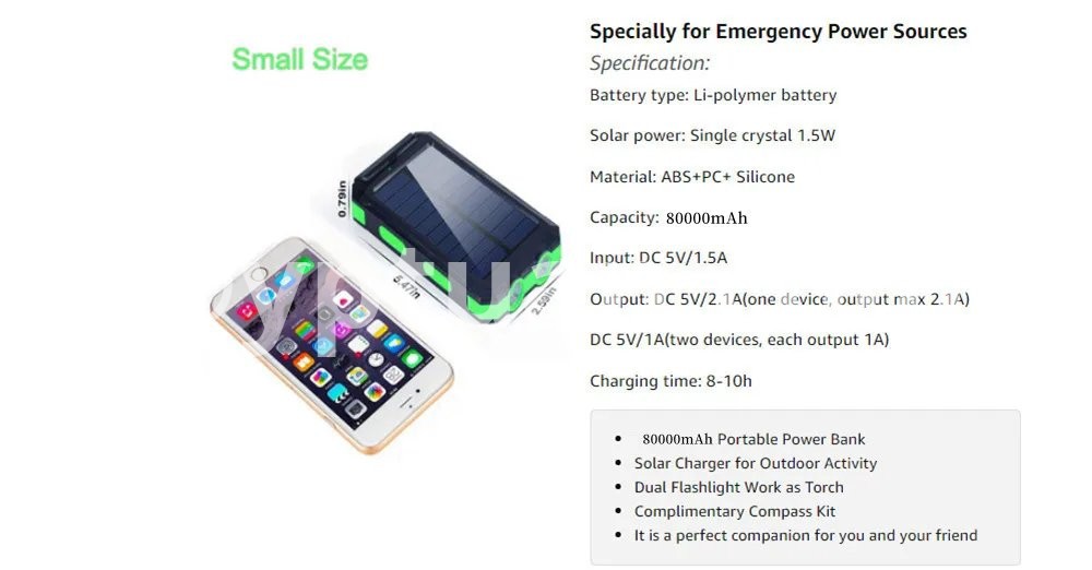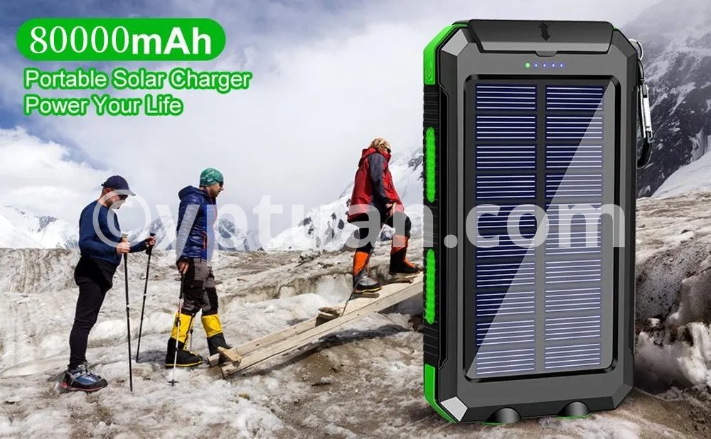 Solar Power Bank 80000mAh Portable Charging Poverbank External Battery Charger Strong Light LDE Light for All Smartphones