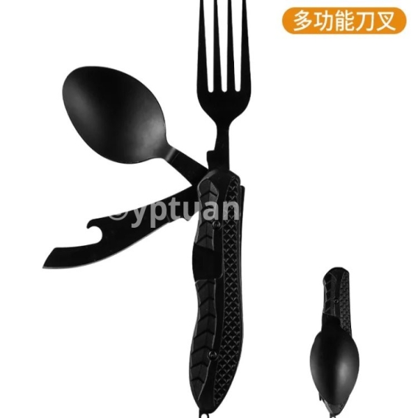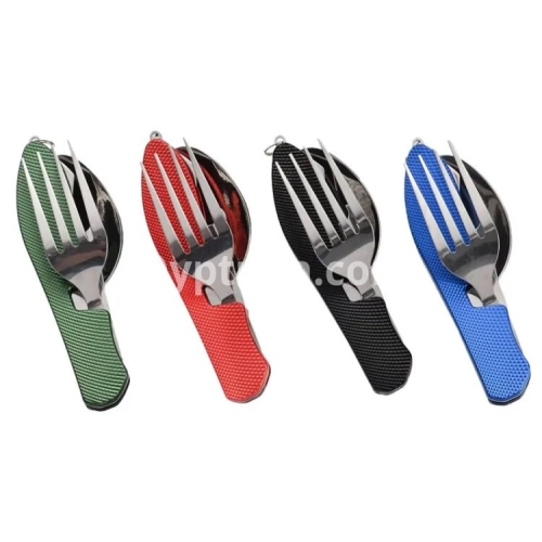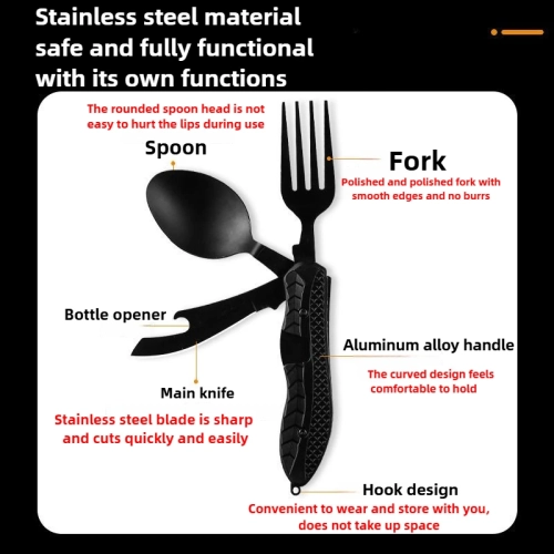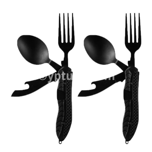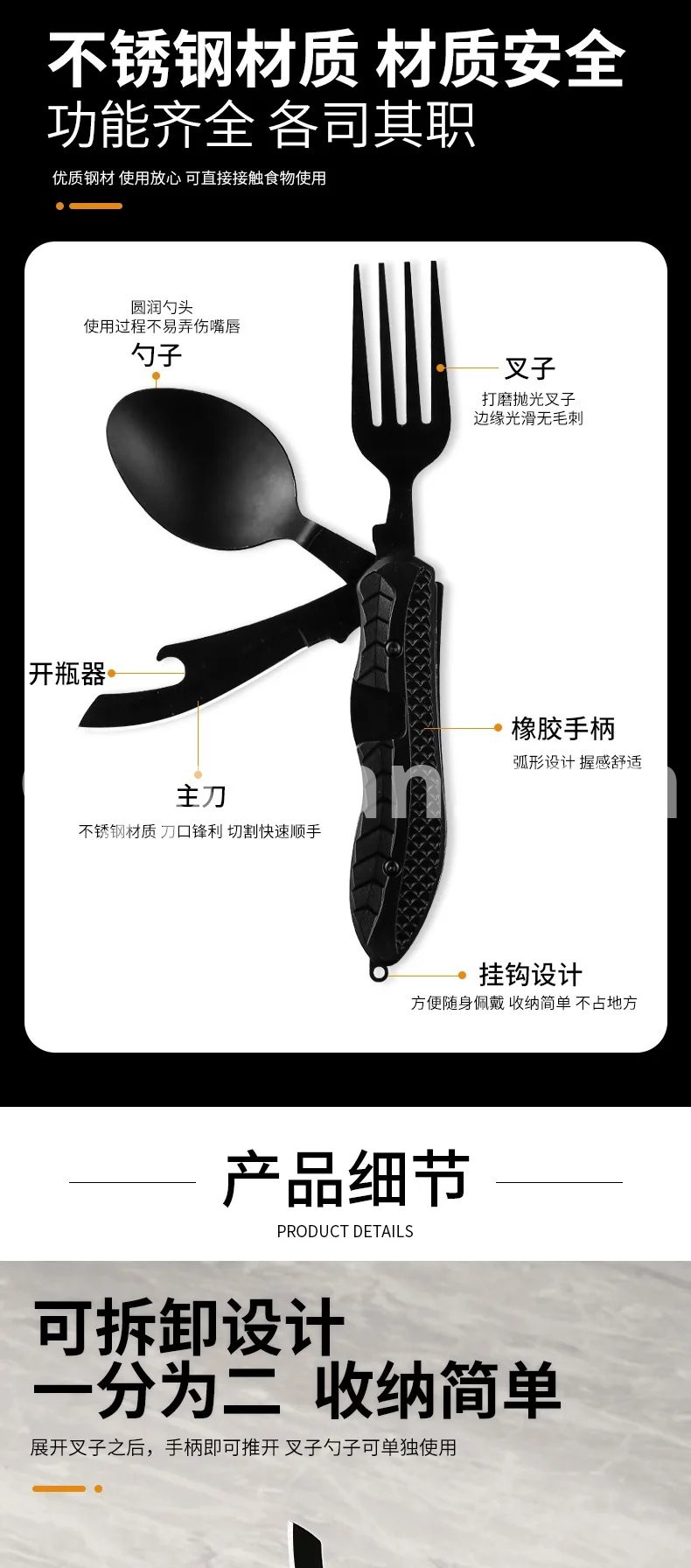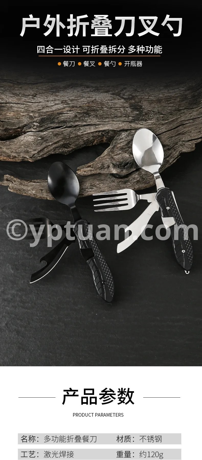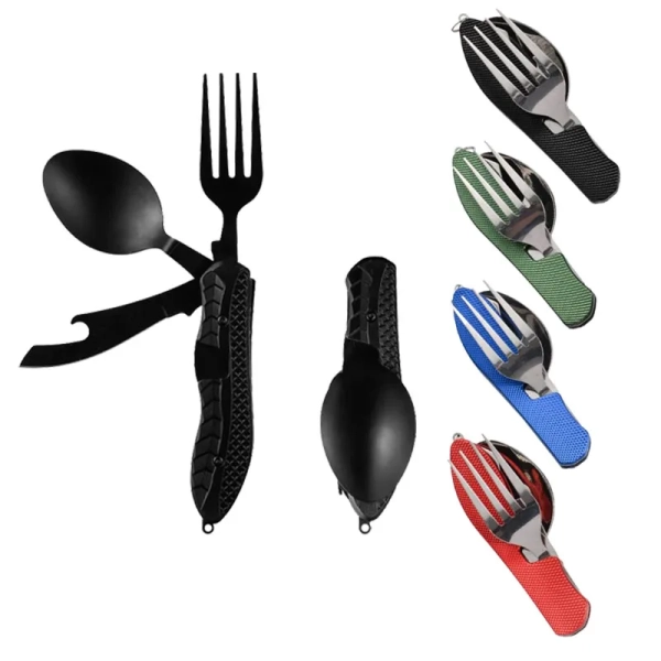 Outdoor Camping Portable Stainless Steel Foldable Spoon Fork Knife Bottle Opener Combo Set Cutlery Home Multitool Tableware