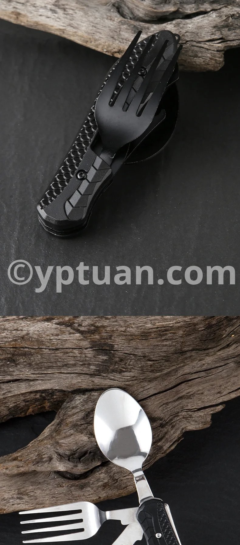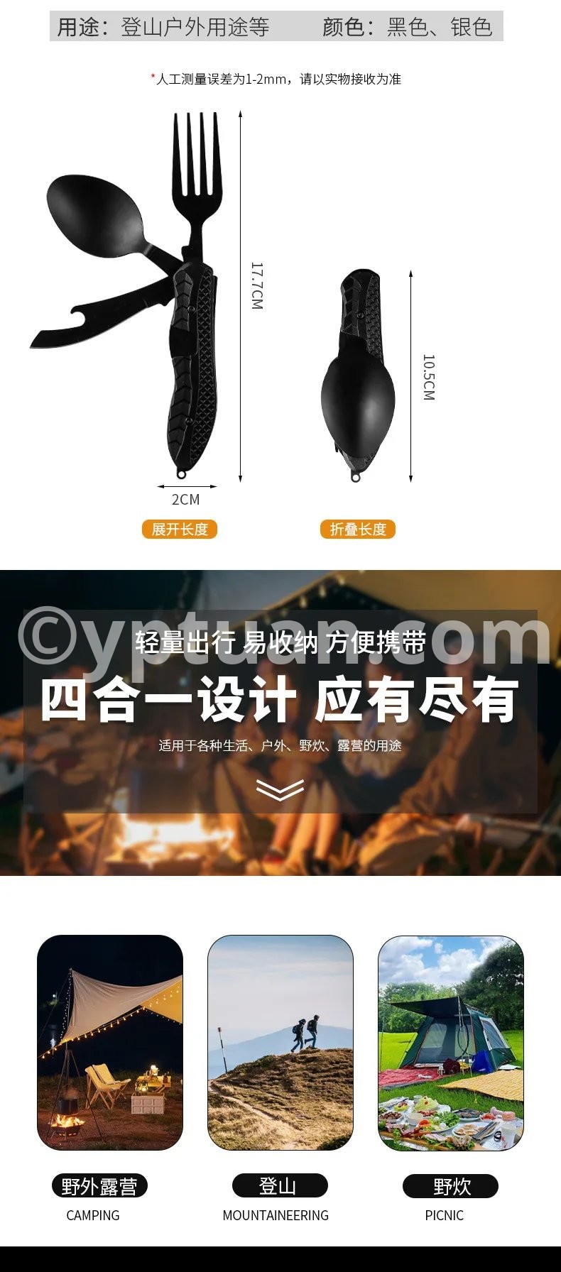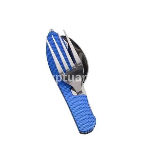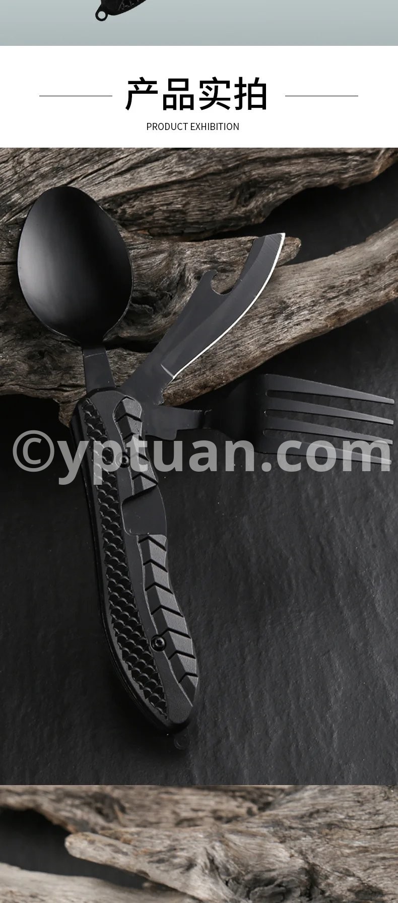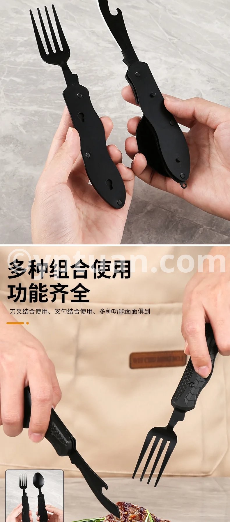 Outdoor Camping Portable Stainless Steel Foldable Spoon Fork Knife Bottle Opener Combo Set Cutlery Home Multitool Tableware
