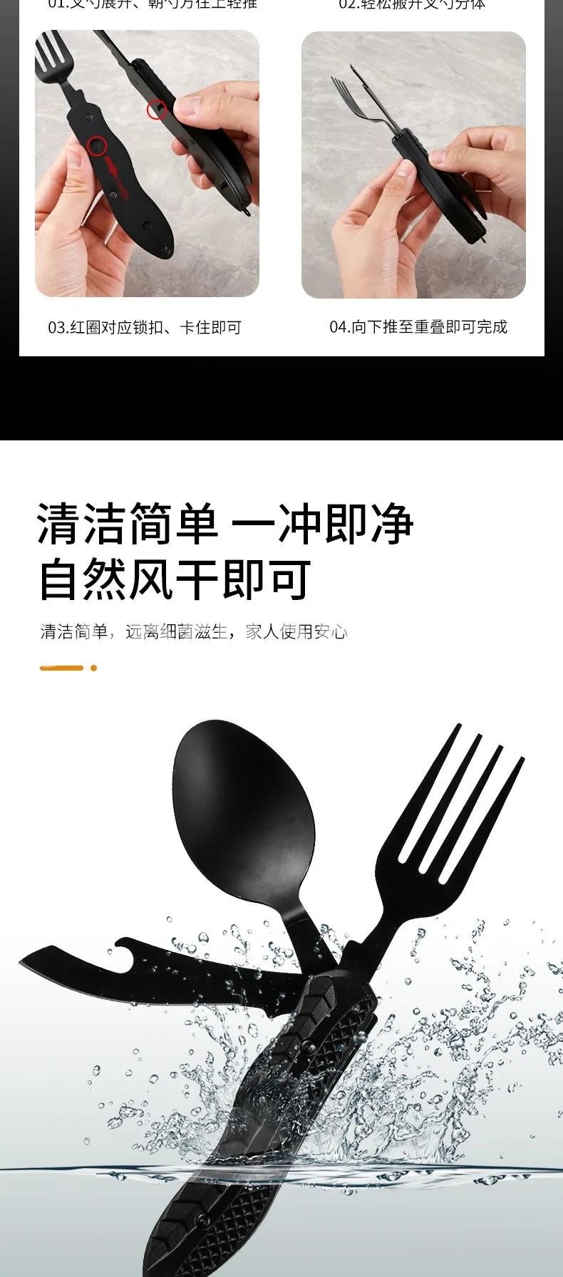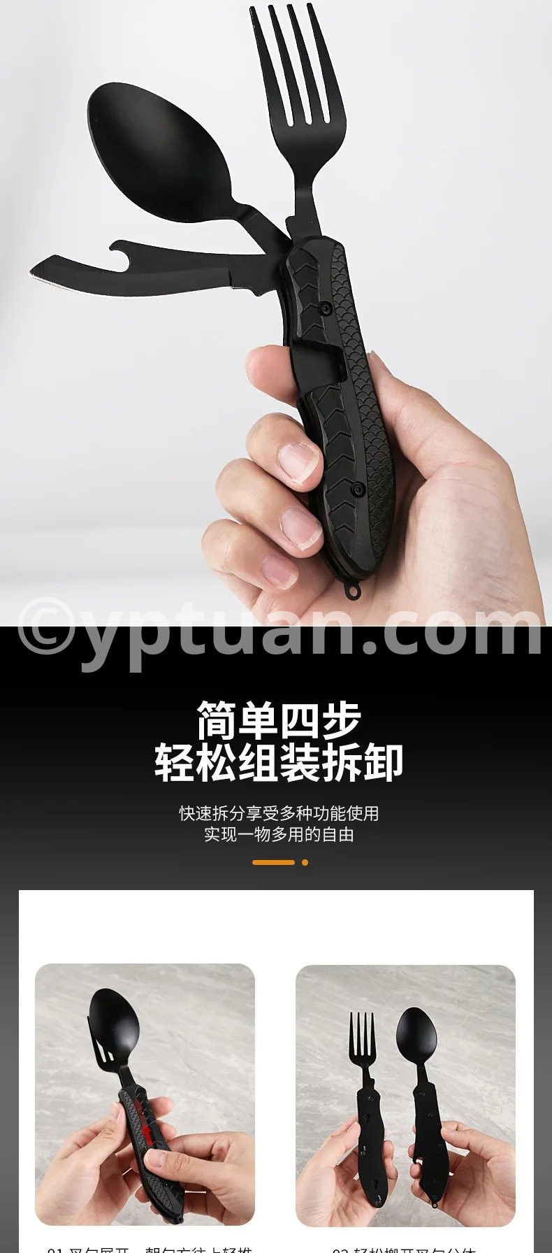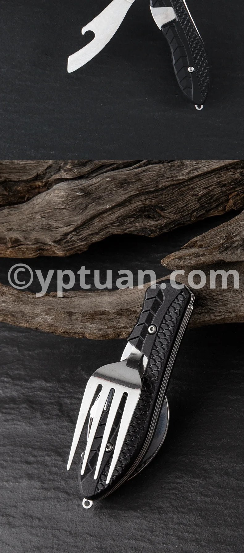 Outdoor Camping Portable Stainless Steel Foldable Spoon Fork Knife Bottle Opener Combo Set Cutlery Home Multitool Tableware
