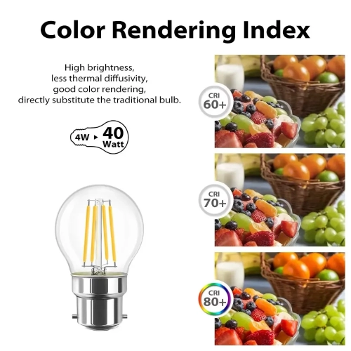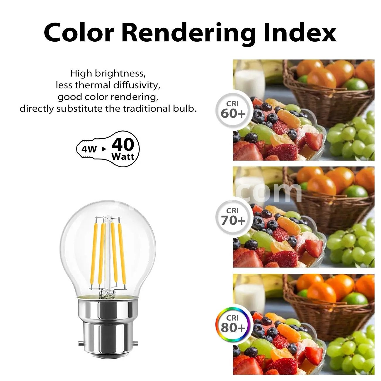 Melery B22 Filament LED Light Bulb 4W Incandescent Bayonet Lamp G45 2700K Warm Cold Day White Replacement 40W Rustic Clear 3PACK