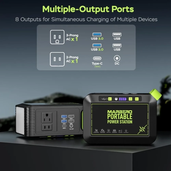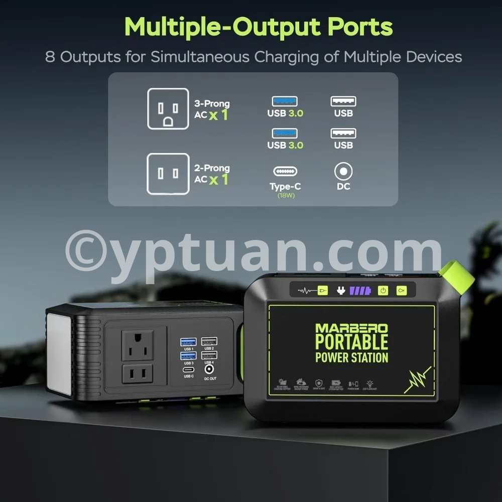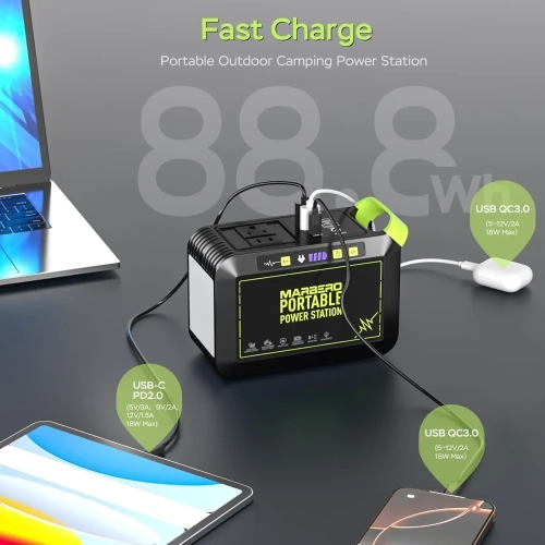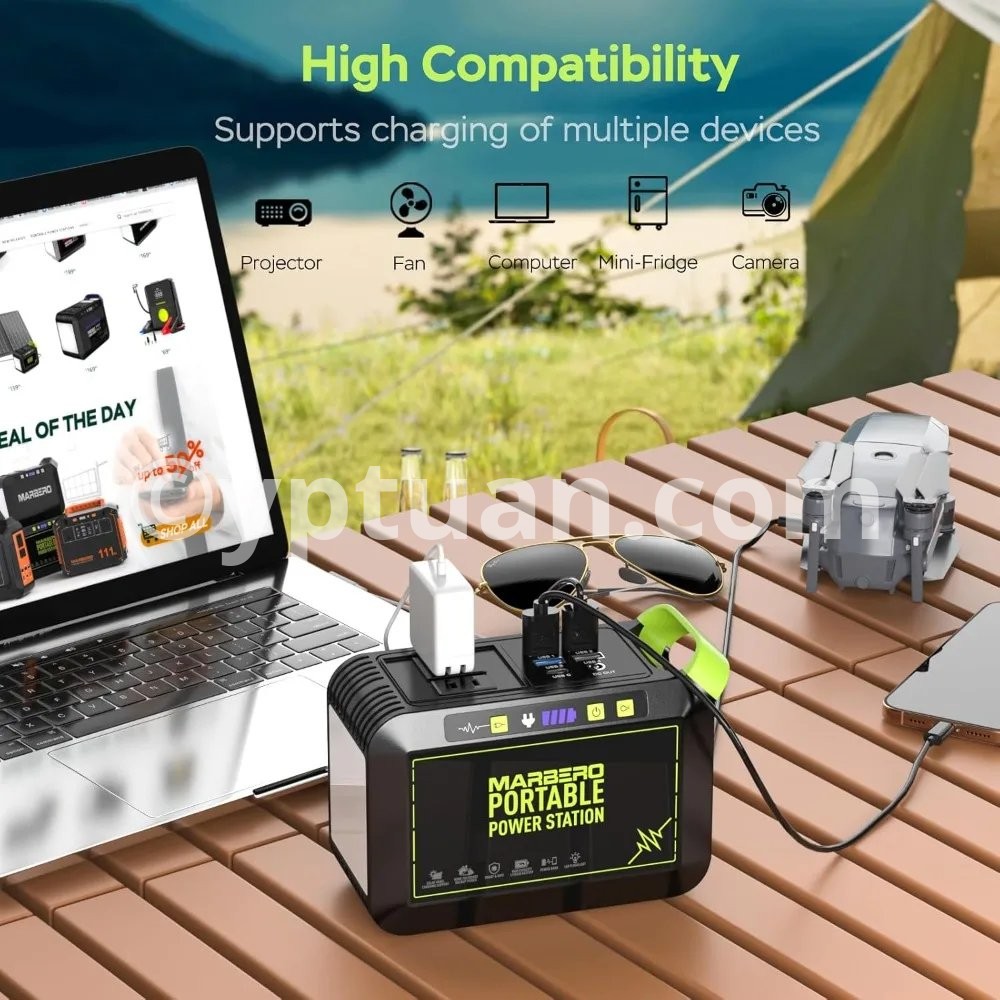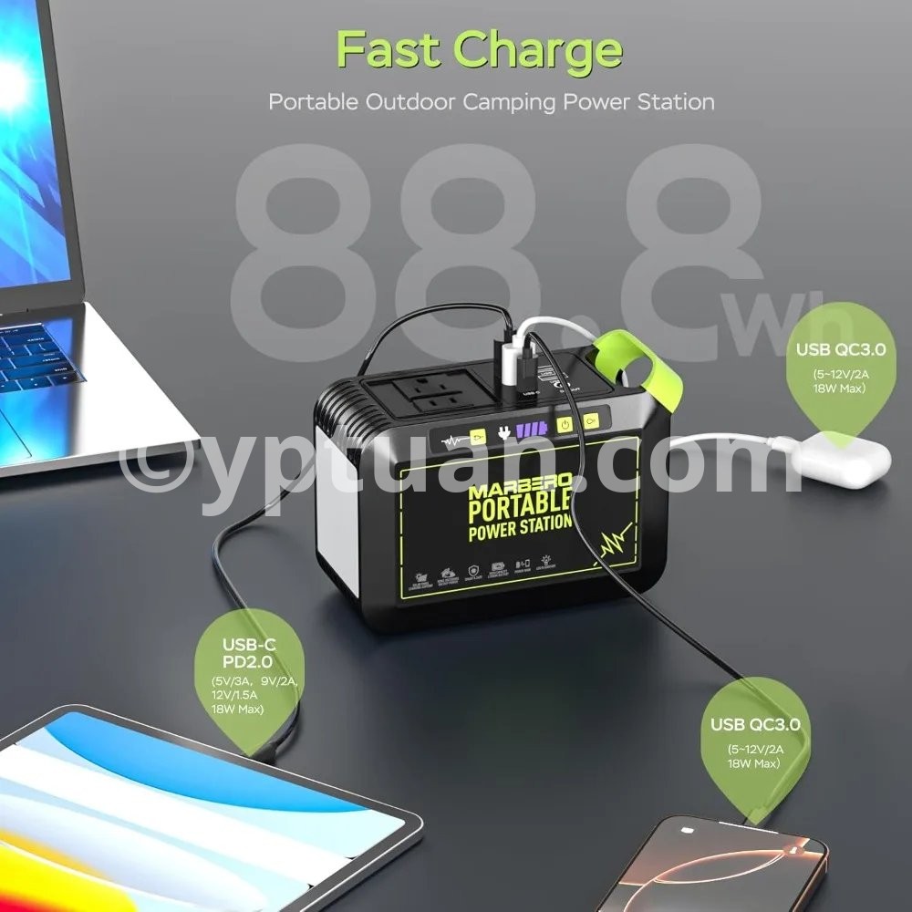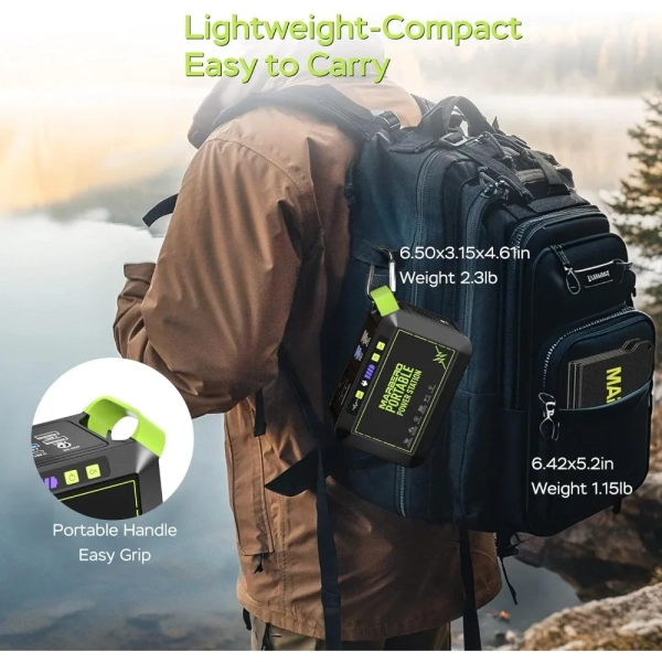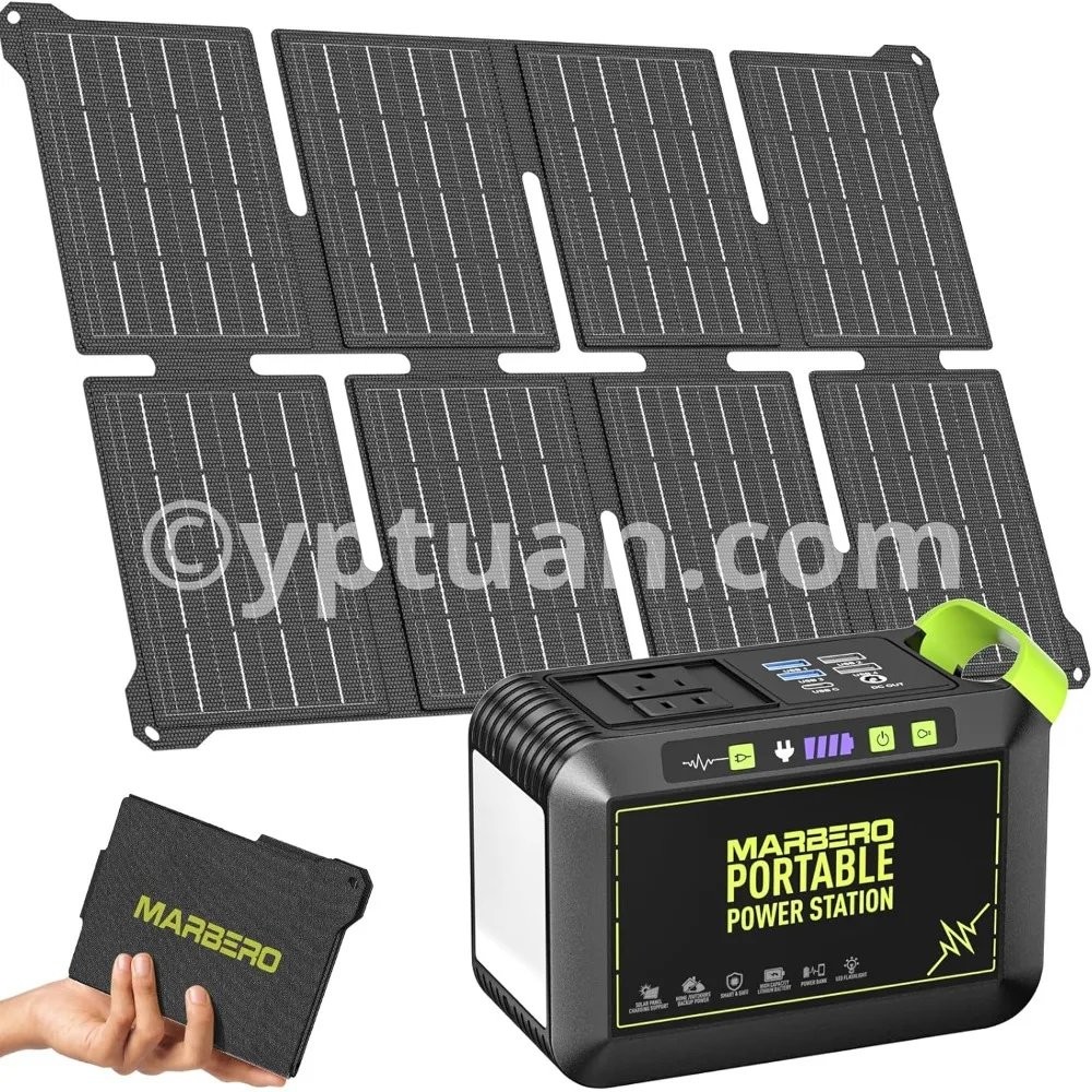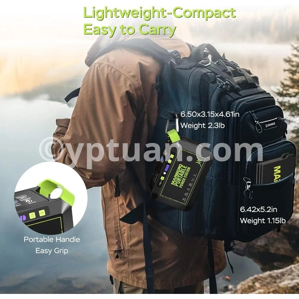 Fast Charging & Large Capacity: 80W(120W Peak)Portable power station, powered by an 88.8Wh (24,000mAh) battery, this unit charges from 0% to 80% in under 2 hours via the AC adapter. It ensures fast, reliable energy for camping, RV trips, or home emergencies 【8-Device Simultaneous Charging】 Power 8 devices at once with 2×120W peak AC outlets (80W rated), 1×18W USB-C, 4×USB-A (2×QC3.0 fast charge), and 1×12V DC port—to safely power everything from phones and tablets to laptops and small appliances during remote adventures 【Ultra-Light & Ergonomic Design】 At just 2.3lbs (6.5×3.1×4.6"), the solar powered generator features a molded handle for secure grip, paired with a 1.15lb foldable solar panel (6.42×5.2×0.98" folded / 20.47×13.5" open). Their backpack-ready design with anti-slip surfaces ensures effortless portability for hiking or emergencies 【24.3% High Efficiency Solar Panel】Military-grade High-quality monocrystalline silicon solar panel deliver 24.3% efficiency (40% higher than standard panels) . The Smart IC auto-adjusts output to devices while preventing overloads/overheating 【Advanced Safety & IP65 Protection】UL-certified(power station) BMS with 6-layer protection (overload/overheat/short-circuit/etc.) ensures 100% safe charging even for kids’ devices. IP65 solar panel rating withstands rainstorms, dust storms, and 14°F to 104°F temperatures — tested on 500+ RV and camping trips 【1-Minute Solar Setup】Plug the included DC cable into the solar panel’s port → Lock the P82-exclusive adapter to your station’s input → Position panel toward sunlight. Smart IC Tech auto-starts charging (no app/buttons) with overload protection, delivering emergency power 2.5X faster than manual generators during blackouts 【Charge anywhere & Built-In Flashlight】AC Wall outlet (0~80% 3hrs), Solar (0~80% 4hrs), Car (emergency top-up), Built-In Survival Flashlight, features 3 brightness modes (Low/Med/High) with 37-68hrs runtime (68hrs-Low / 37hrs-High) + SOS strobe for emergency signaling. 【Everything included】Power Station ×1, 25W Foldable Solar Panel ×1, Car Charger ×1, AC Adapter ×1, User Guide ×1 — no hidden costs. 2-year warranty & 24/7 US support