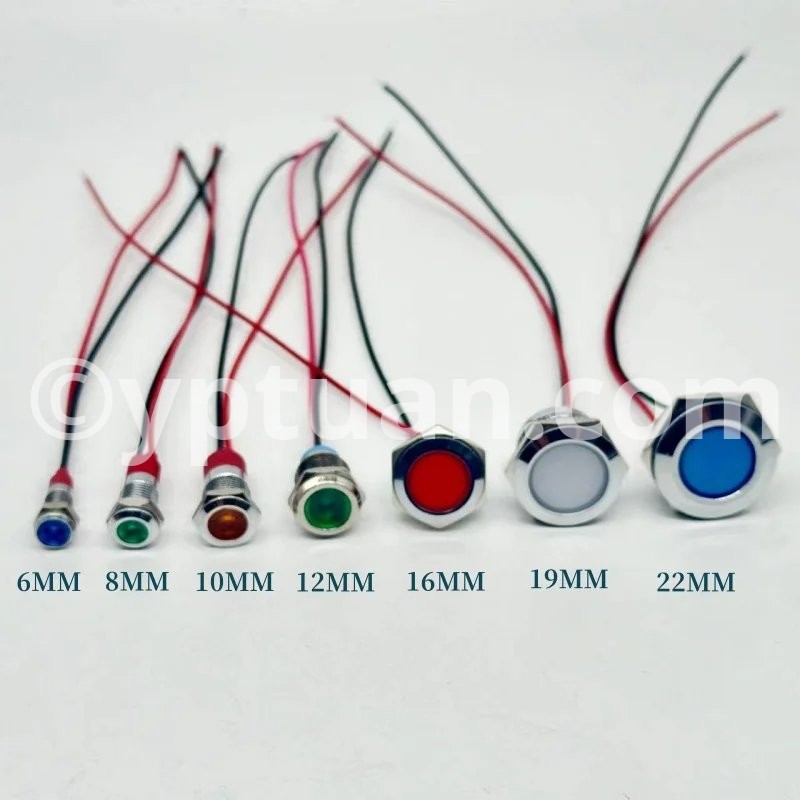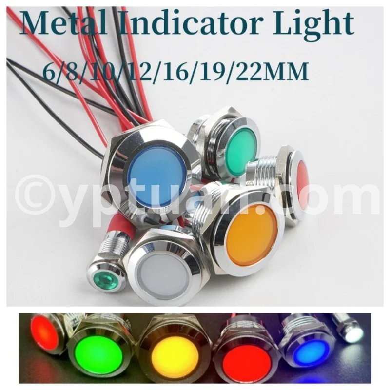 6/8/10/12/16/19/22MM LED Metal Indicator Light Waterproof Signal Light With Wire 3V 5V6V12V 24V 220V Red/Yellow/Blue/Green/White