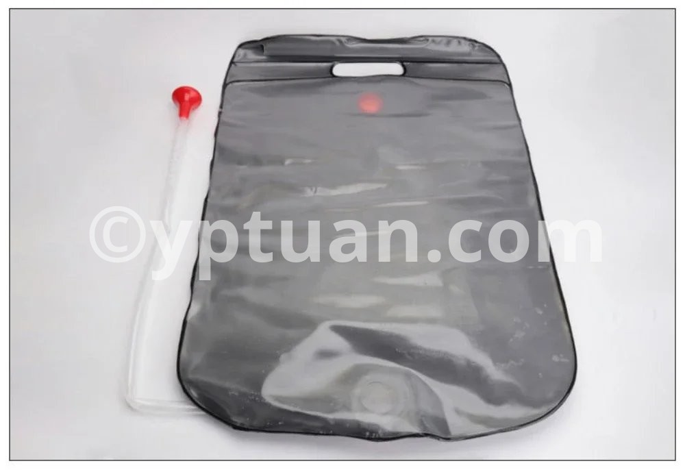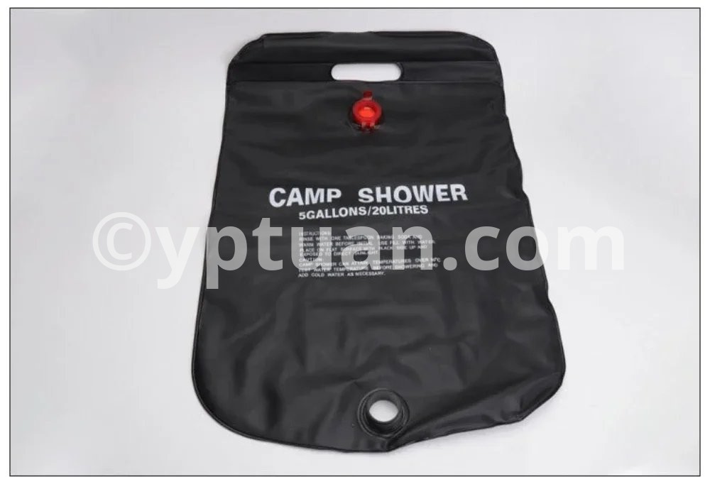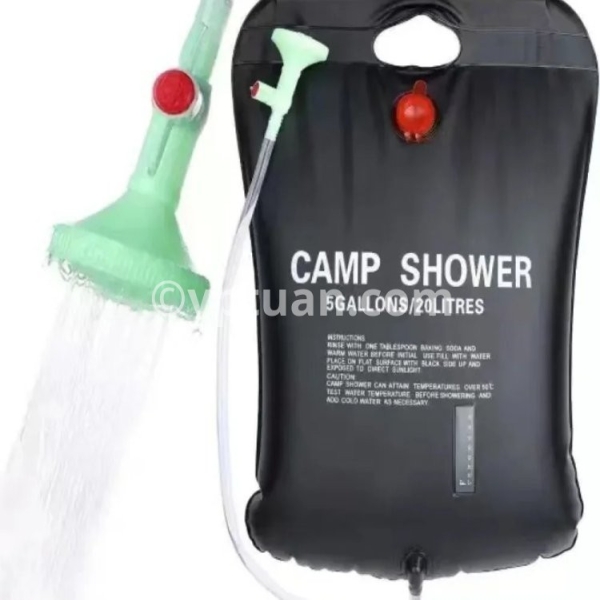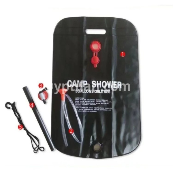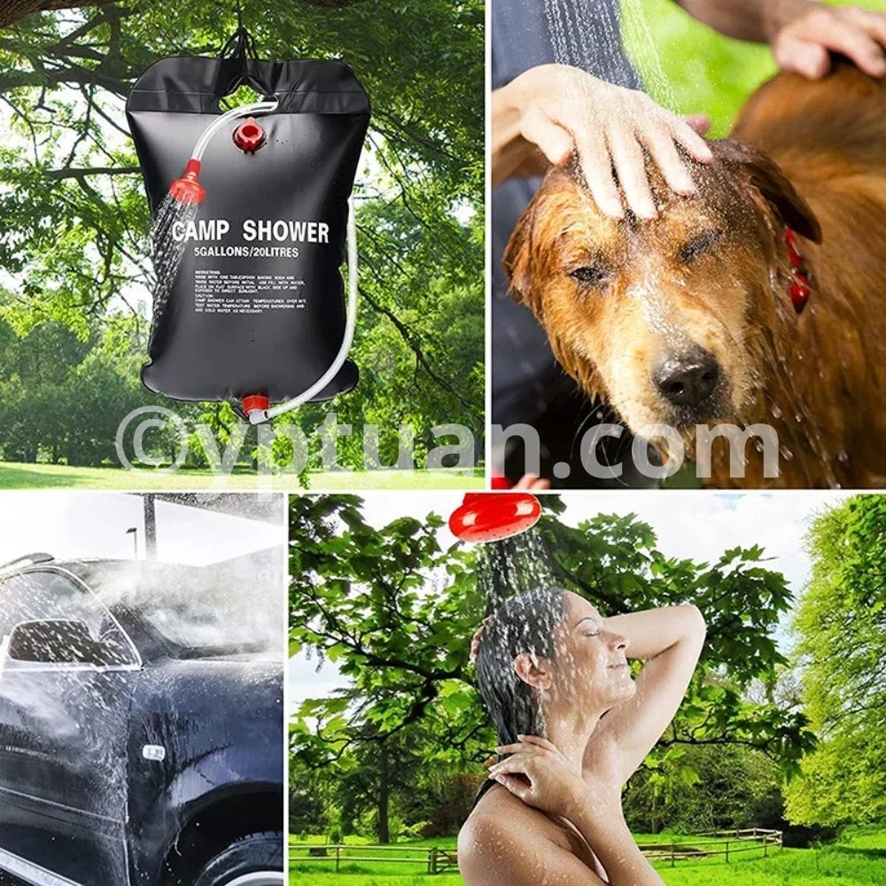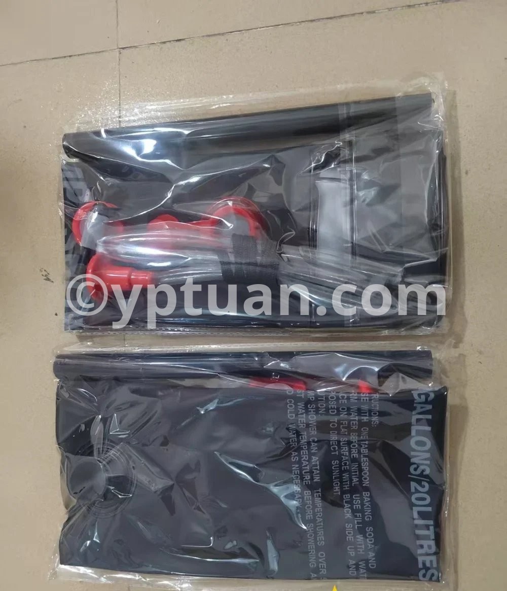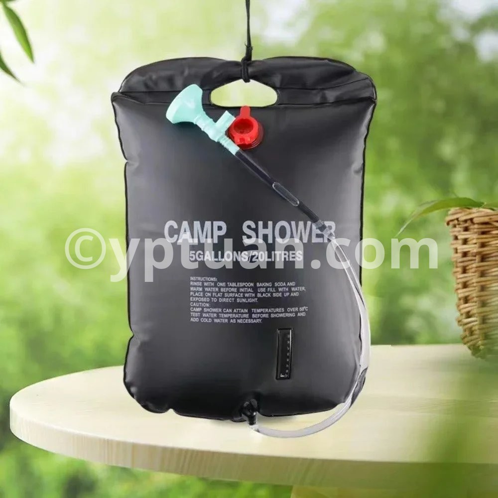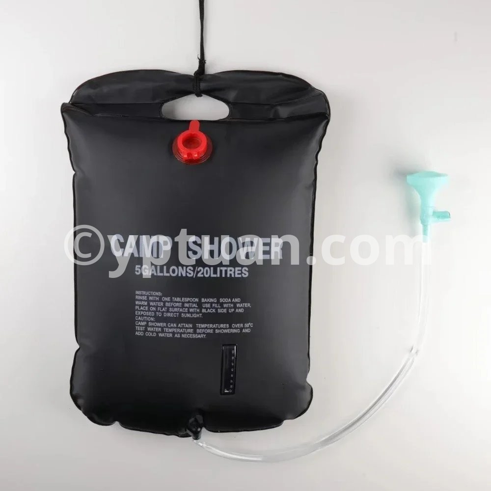 Solar Shower Bag 20L Foldable Camping Shower with Removable Hose Head Sun Heated Water Bag for Outdoor Bath Gear —————————————————————— Specification: Material: PVC Capacity: 20L Product size: 60.5*39.4cm Colour: Black Usage: Outdoor/home shower Principle : Black PVC absorbs sunlight, heats the water in the water bag, saves energy and is healthy, and you can shower directly Note: Due to the different monitor and light effect, the actual color of the item might be slightly different from the color showed on the pictures. Thank you! Please allow 1-2cm measuring deviation due to manual measurement.