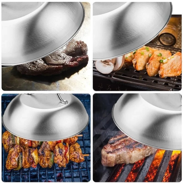 9inch Stainless Steel BBQ Grill Cover Heat Resistant Lid for Outdoor Camping Picnics Barbeque Accessories