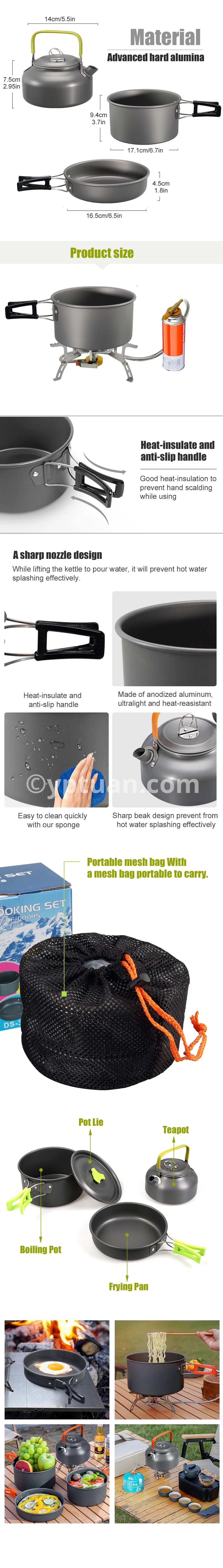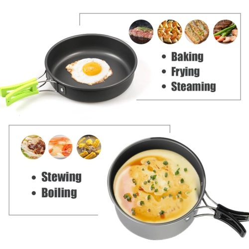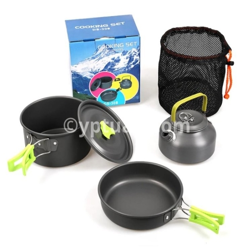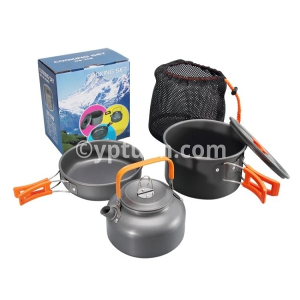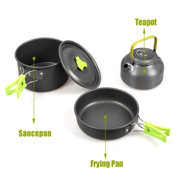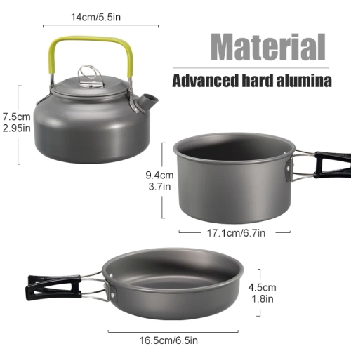 WESTTUNE Camping Cookware Kit Aluminum Outdoor Portable Cooking Set Pot Pan Kettle for Camping Tableware Hiking Picnic 3pcs