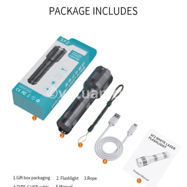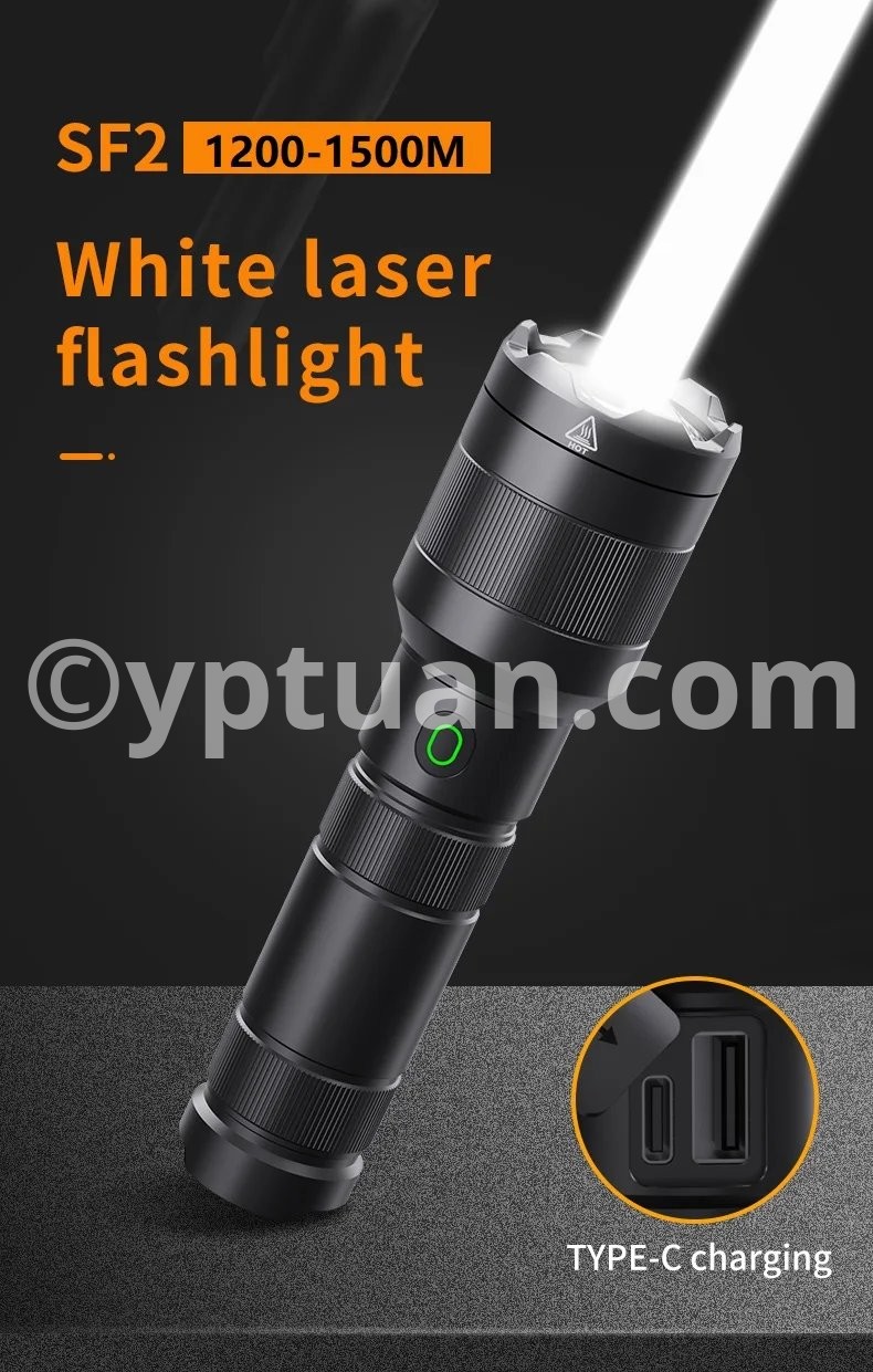 LEP White Laser Flashlight 1200-1500 Meters SF2 White Laser Light Rechargeable 21700 Battery Tactical Military Search Flashlight