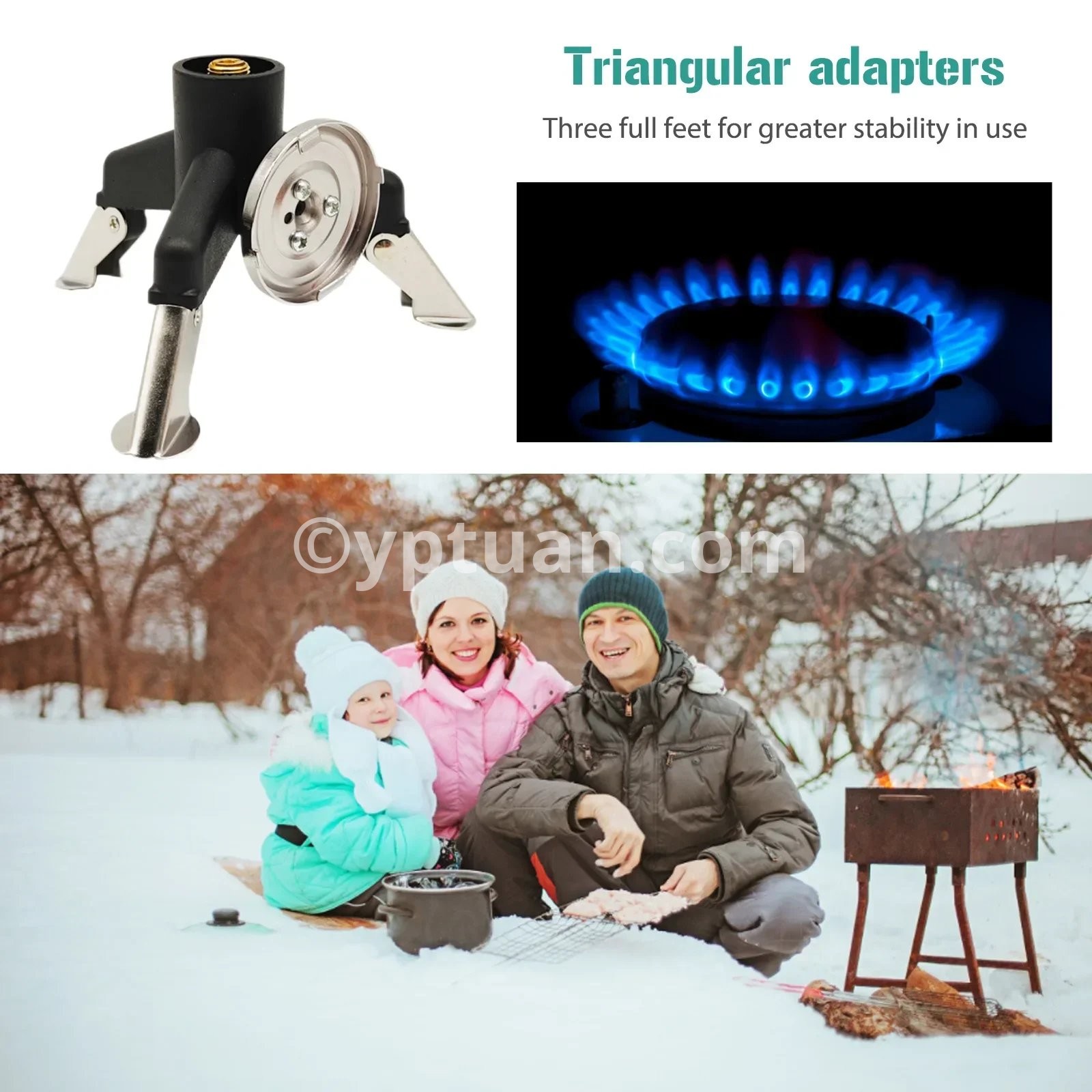 product:Furnace conversion head Color:As shown in the figure Size: As shown in the figure Applicable: outdoors Features: 1. Material: High temperature resistant and flame retardant nylon material, all copper inner core. 2. Gas Tank Tripod Adapter: The three-legged full-ground design makes the product more stable in use. 3. With Storage Bag: With waterproof thickened storage bag. 4. Function: It can realize the conversion from threaded gas tank to cassette long gas tank. 5. Camping Stove Must-have: Great accessory for outdoor camping burners, picnic burners, etc.. Package includes: 1pc Furnace conversion head Notes: Due to the light and screen setting difference, the item's color may be slightly different from the pictures. Please allow slight dimension difference due to different manual measurement.