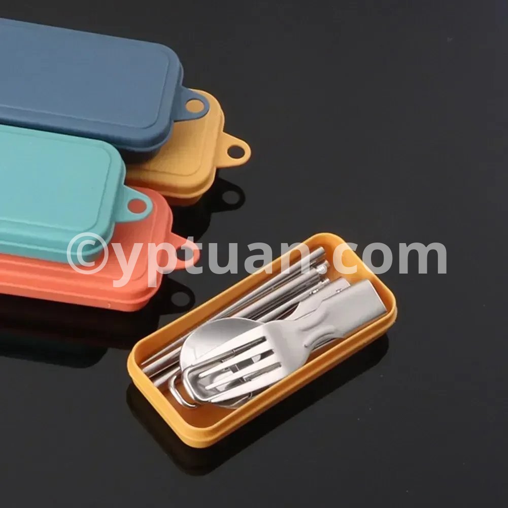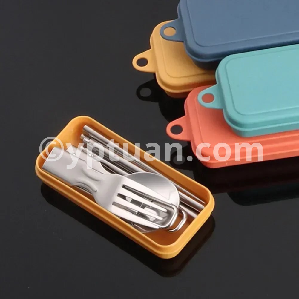 Size: spoon: 9*3.9cm, fork: 15.5cm, chopsticks: 19cm, box: 11.5*5.5cm