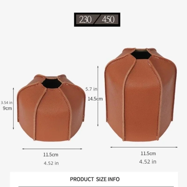product:Fuel tank protective cover Color:As shown in the figure Size: As shown in the figure Applicable: outdoors Features: 1.This leather protective cover is can give it as a small gift to your who like outdoor camping. 2.Made of quality pu leather the cylinder sleeve is firm and It a good cushioning and anti-effect. 3.The protective sleeve is very suitable for outdoor camping. It effectively protects the storage tanks from external shocks. 4.The camping gas tanks protections cover is easy to store and carry and will not add additional burden to yourself. 5.It can reduce the dust and rusts of that gas tanks, and suitable for variety of camping small gas tanks. Package includes: 1/2pcs Fuel tank protective cover Notes: Due to the light and screen setting difference, the item's color may be slightly different from the pictures. Please allow slight dimension difference due to different manual measurement.