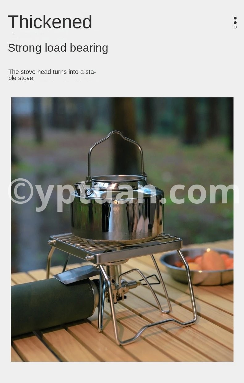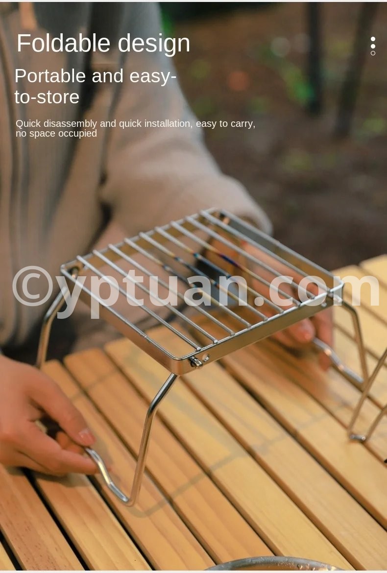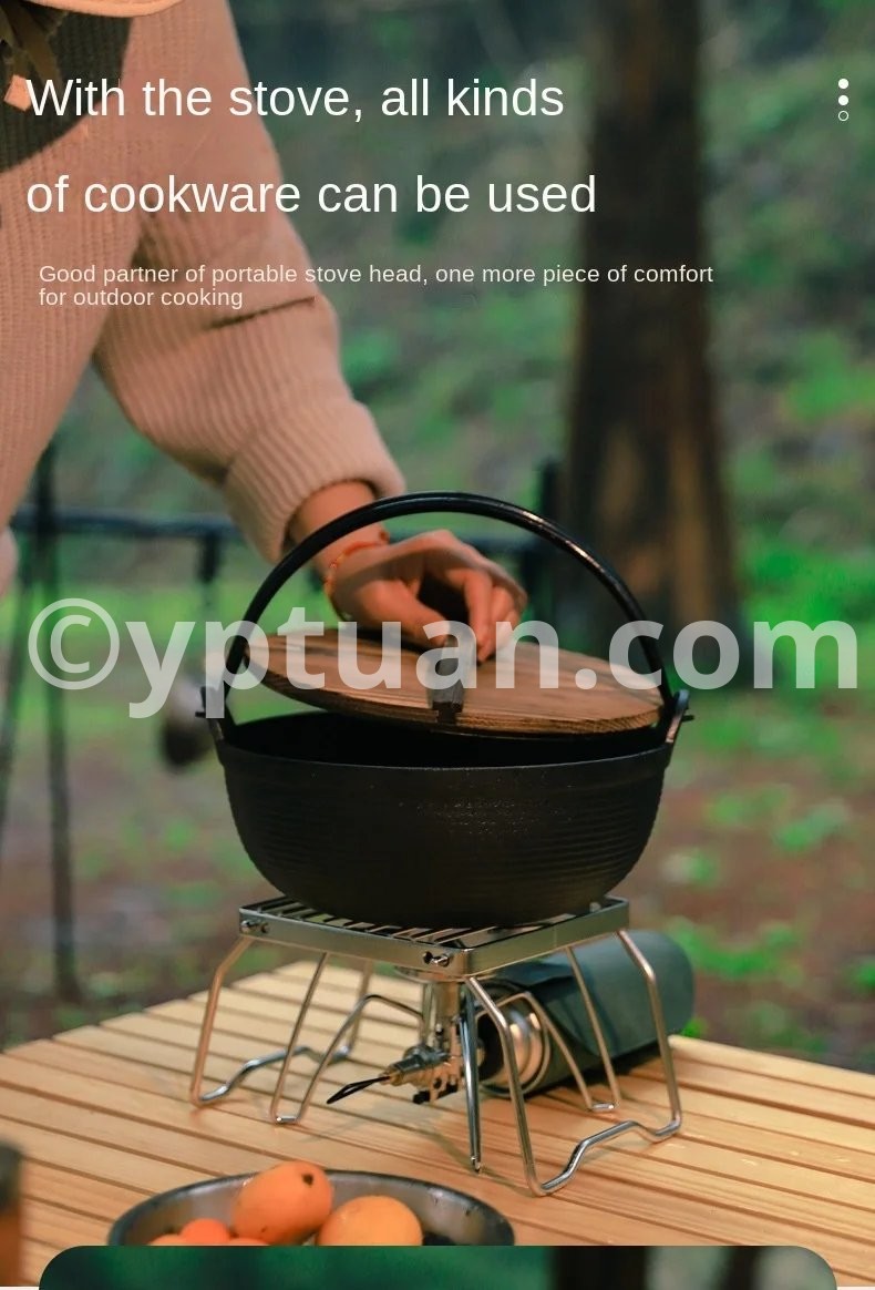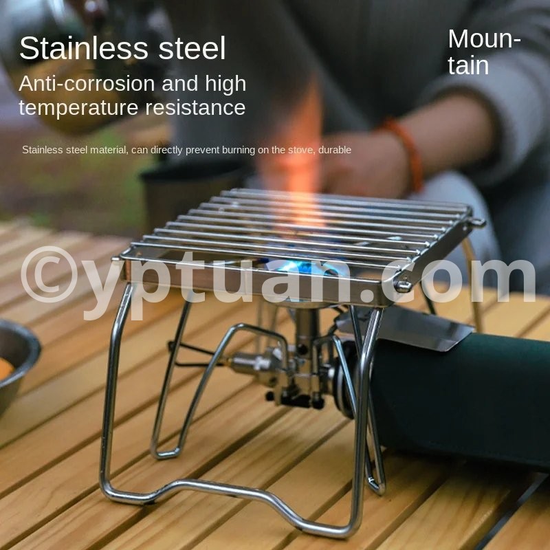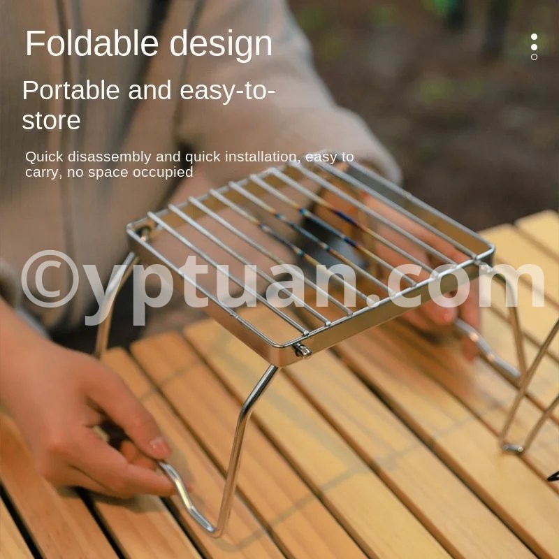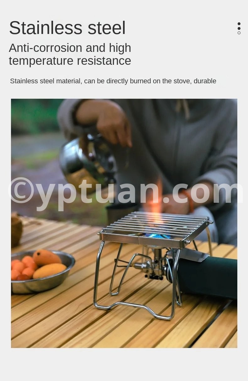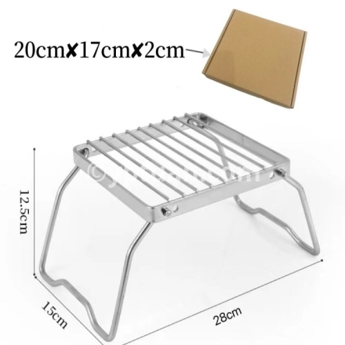 Specifications Size: unfolded 28x15x12.5cm Weight:0.32kg Can withstand weight: 20kg Description: Portable and Folding : This stove holder is designed to be portable and foldable, making it easy to carry around while camping or hiking. Material: Stainless steelMade from high-quality stainless steel, this stove holder is durable and long-lasting, ensuring that it can withstand the wear and tear of outdoor activities. One-Piece Structure :With a one-piece structure, this stove holder is easy to set up and use, providing a convenient and hassle-free way to cook and bake while outdoors. Versatile Usage :This stove holder can be used for a variety of outdoor activities, including camping, hiking, and baking, making it a versatile addition to any adventurer's gear collection