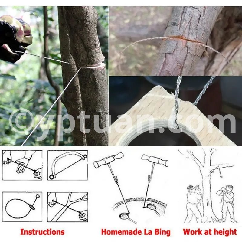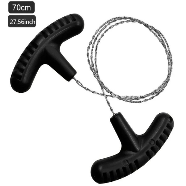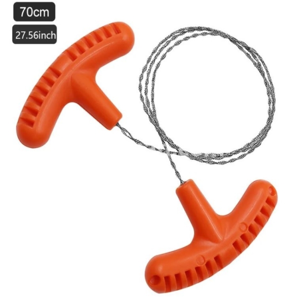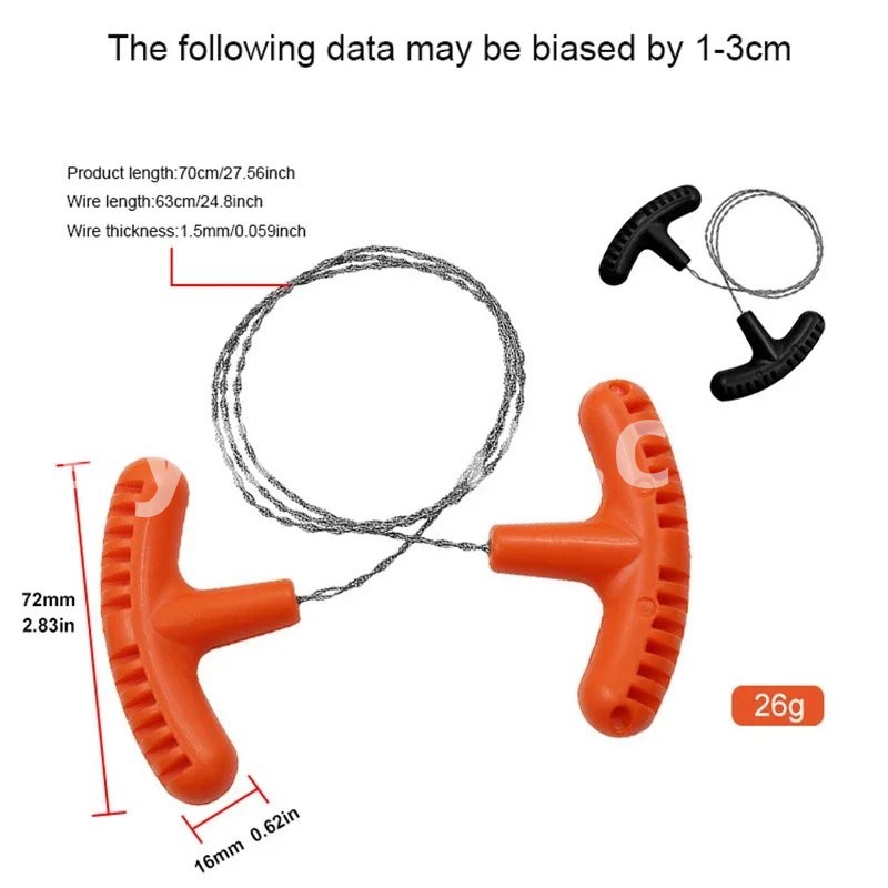 Steel portable wire saw as survival tool can be sawing wood plastic bones rubber soft metal and other materials Steel wire with 2 plastic finger hook handle Good quality, saw blade sharp, small size, light weight, easy to carry Don't try to cut with the wire saw in a U shape. The straighter it is the better Type:saw Color:orange & black Material:steel & plastic