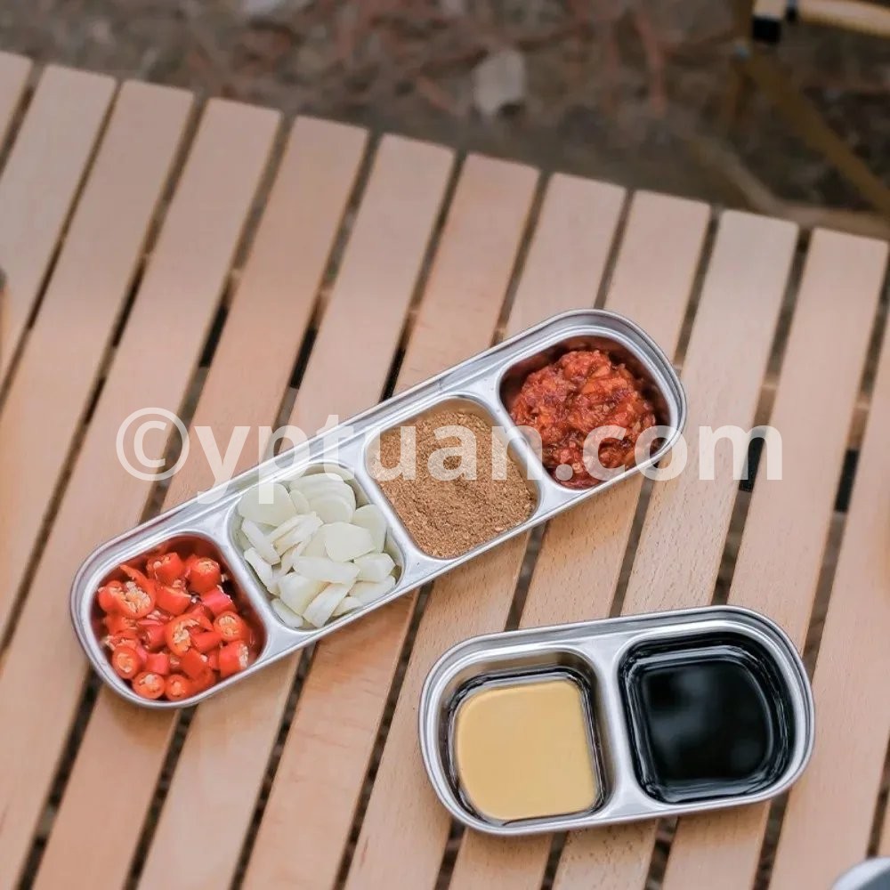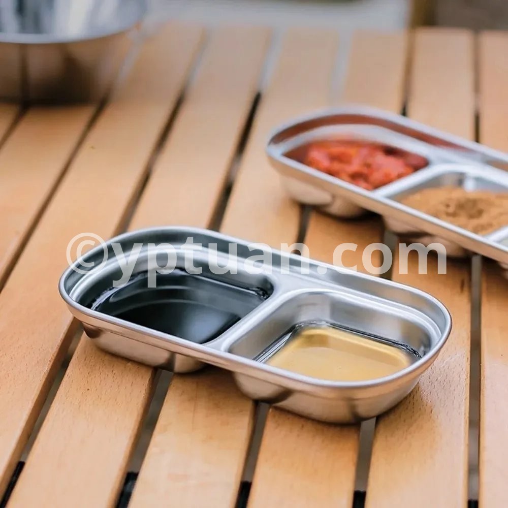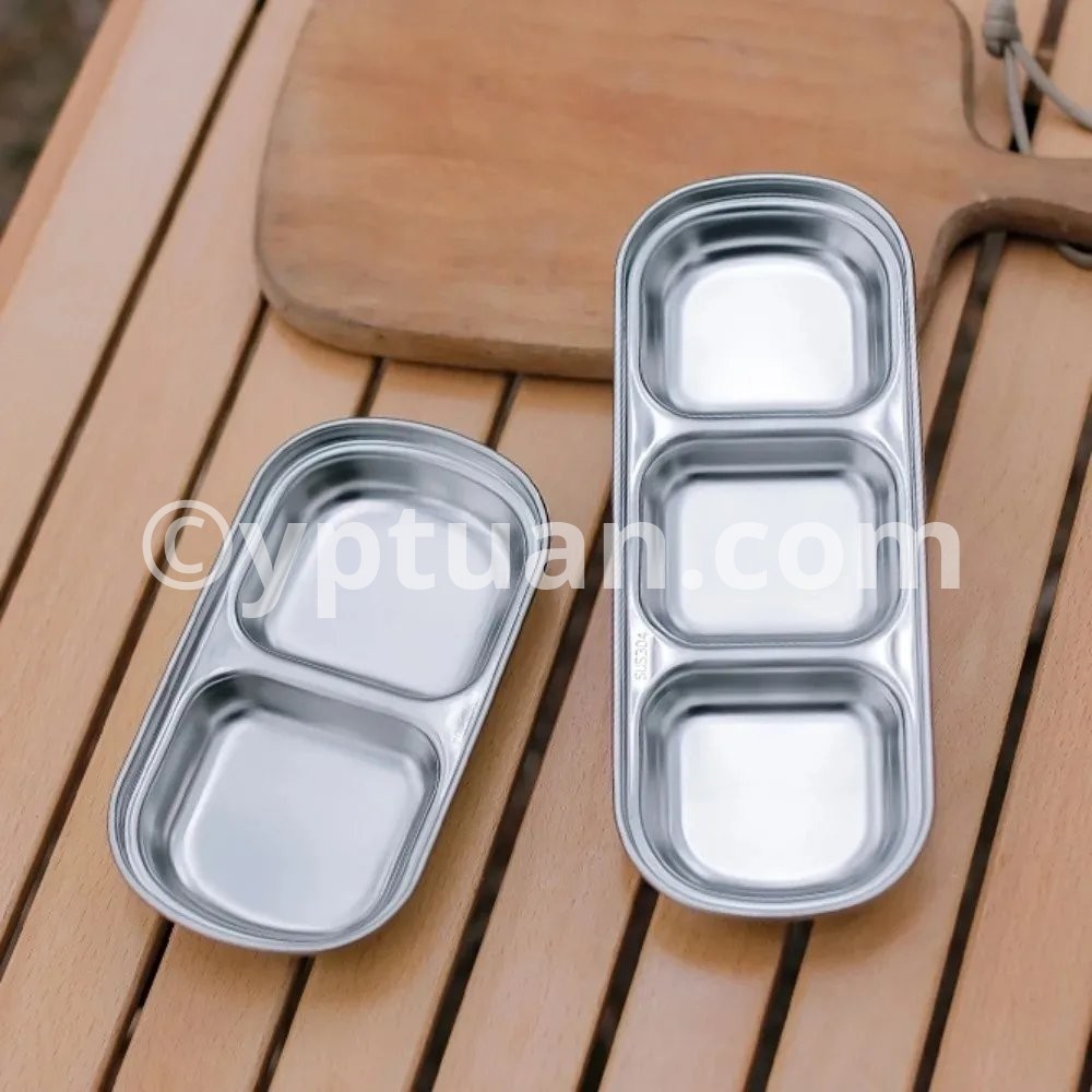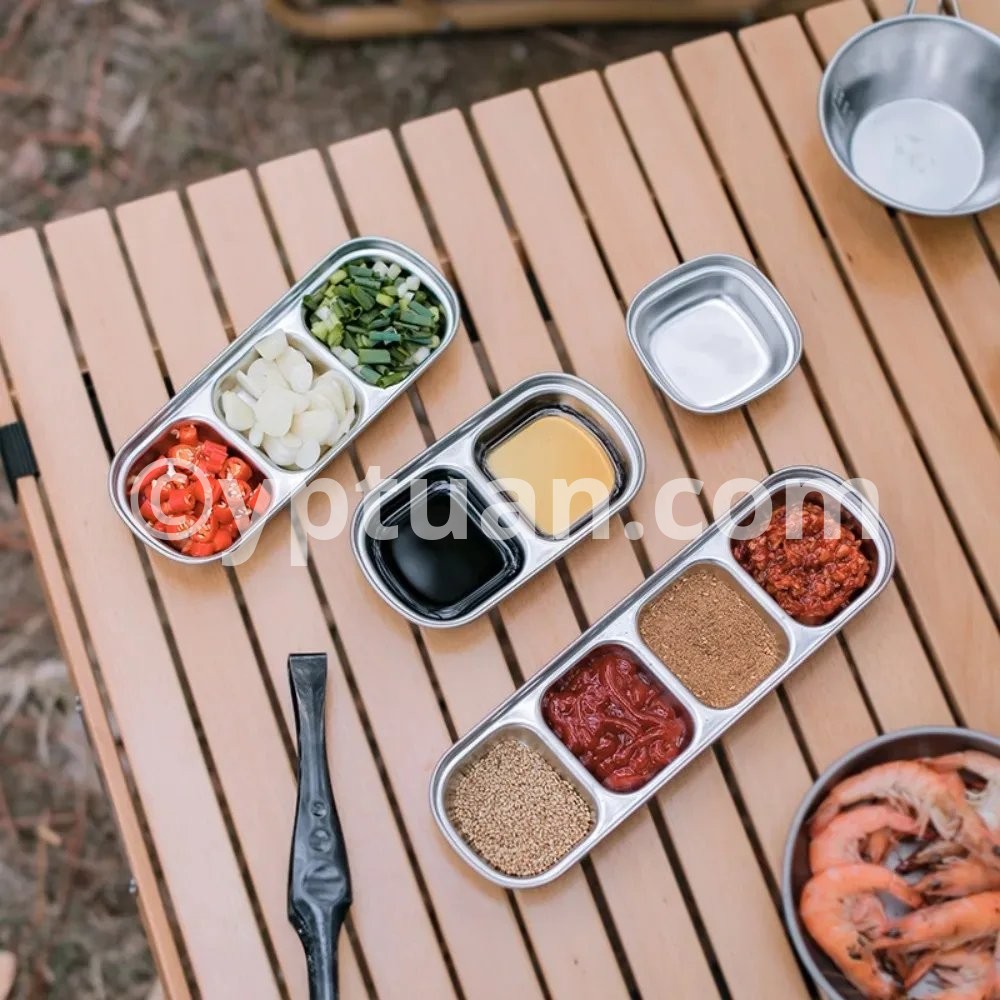1PC Stainless Steel Multi Grid Seasoning Dish Partitioned Sauce Container Portable Dipping Bowl for Outdoor Camping Kitchen