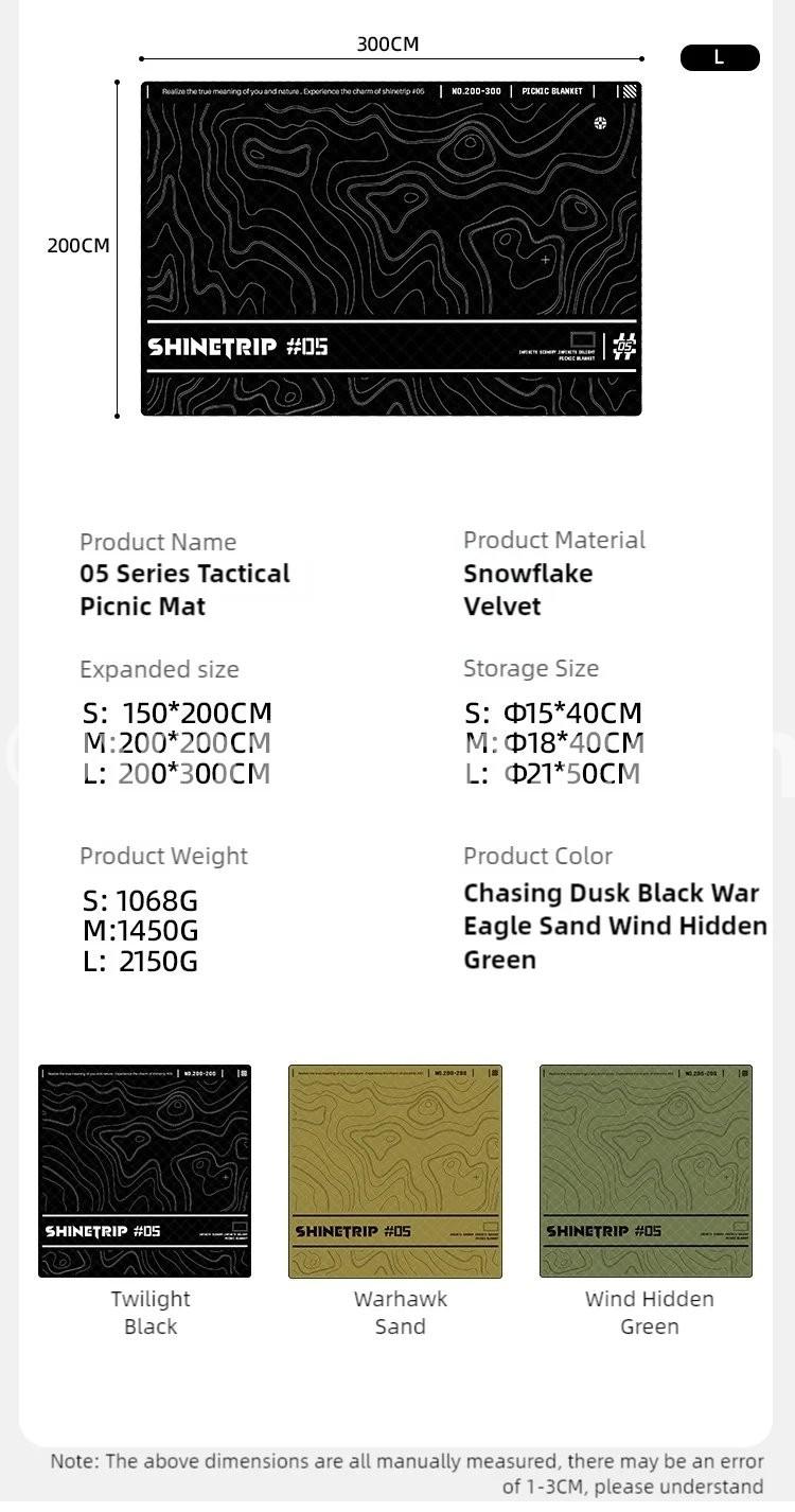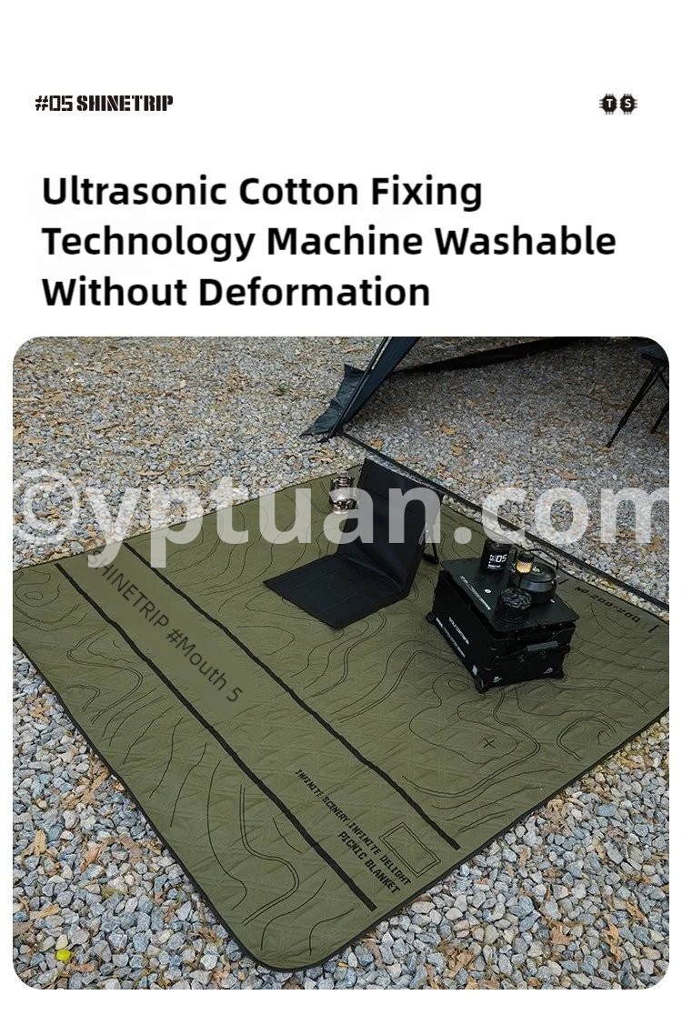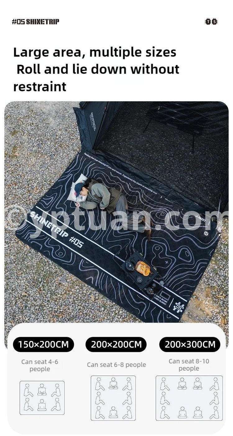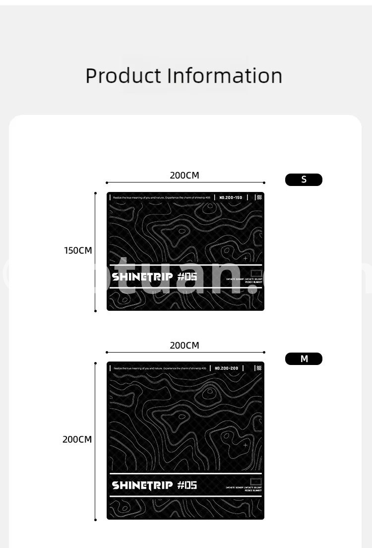 1.The ShineTrip Ultrasonic Aluminum Film Picnic Mat features a unique contour texture layout and tactical style design, ensuring a stylish and functional outdoor experience. Its digital printing positioning printing offers a visually appealing large area multi size mat that's perfect for any picnic or outdoor activity.