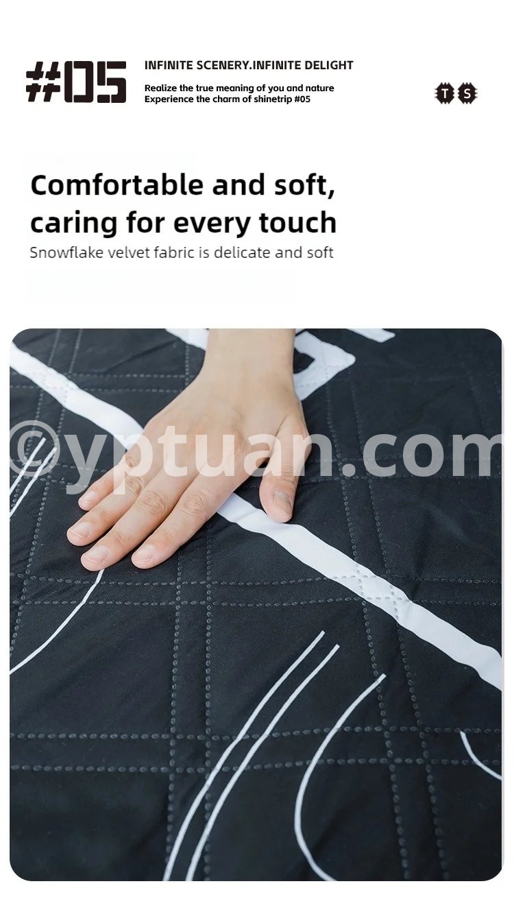 5.The ShineTrip mat's thickened shaping cotton not only adds to the comfort but also ensures the mat retains its shape over time. Combined with the delicate and soft snowflake velvet fabric, it provides a luxurious outdoor lounging experience that's both comfortable and stylish.