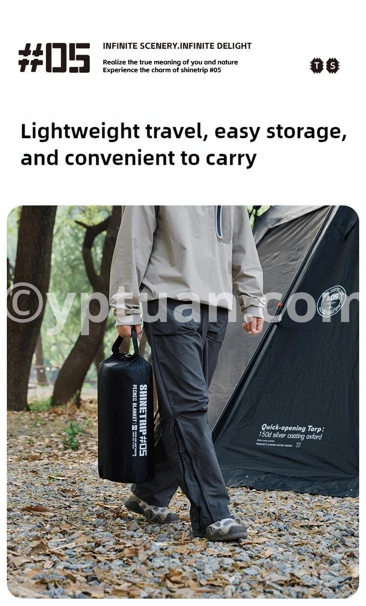 4.Designed for convenience, the ShineTrip Ultrasonic Aluminum Film Picnic Mat is lightweight travel-friendly, easy to storage, and features convenient carrying options. Its compact design doesn't compromise on the large area multi size coverage, making it a must-have for outdoor enthusiasts.