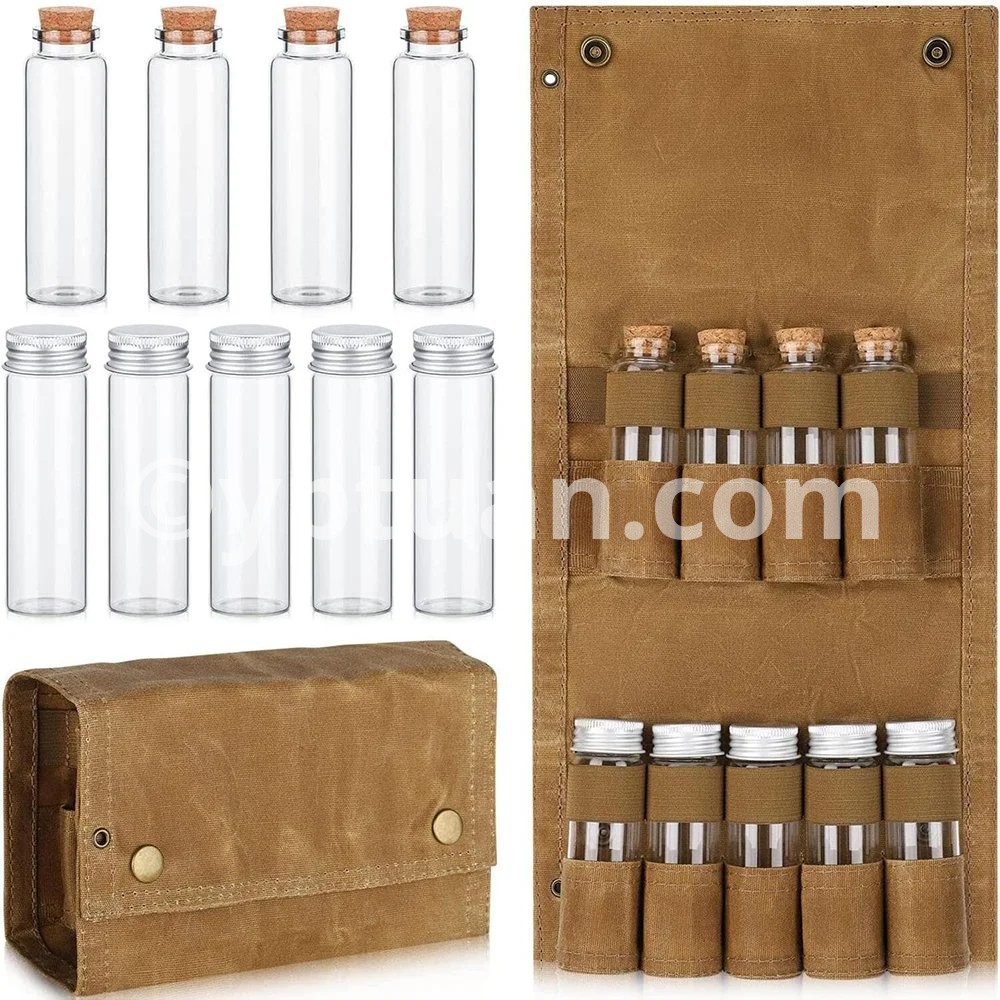 9 pcs jar storage bags, canvas seasoning storage bag organizer outdoor camping barbecue picnic seasoning container set