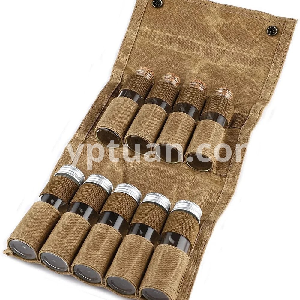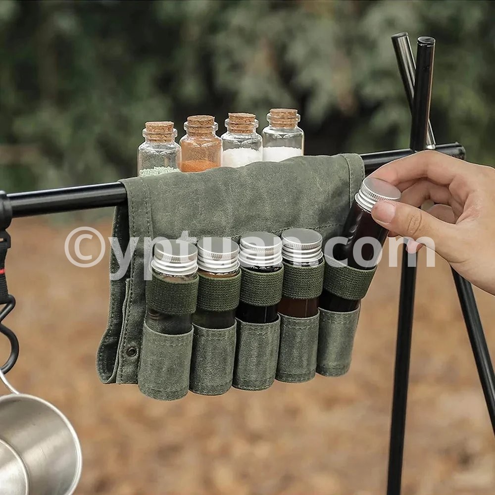 9pcs Outdoor jar storage bags,canvas seasoning storage bag organizer outdoor camping barbecue picnic seasoning container set