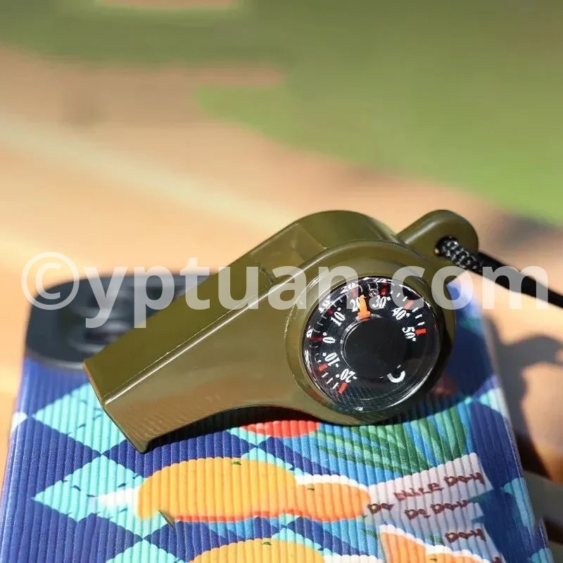 Features: 1. High score Bay whistle, Loud, Up to 150db, Spread further. 2. Referring to North (South) needles. 3. Thermometer. 4. nylon lanyard (more convenient to carry, rope length of about 40cm (hanging on the neck). 5. Used to sports events, ask for help, Training pet ect . Specification: Name: 3 in 1 whistle (Compass, thermometer) Material: plastic Size: 60x28mm Field rescue whistle tool