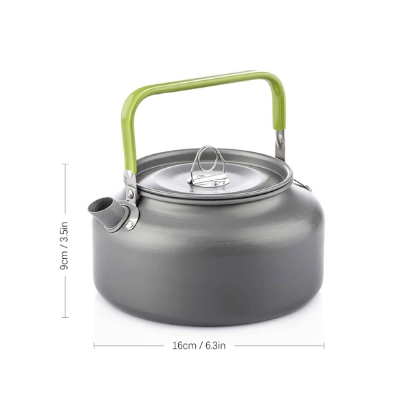Specification: Features: Aluminum alloy construction with oxidation coating for quick heating and corrosion resistance. Short spout for precise pouring. Rubber-coated handle protects your hand from scald. Comes with a mesh sack for easy storage and carrying. Can be used at home, camping, hiking, picnic, outdoor cooking, or anywhere needed. Specifications: Material: Aluminum alloy Volume: 0.8L / 1.2L / 1.6L (optional) 0.8L: 14 * 8cm / 5.5 * 3.1in 1.2L: 16 * 9cm / 6.3 * 3.5in 1.6L: 16 * 12cm / 6.3 * 4.7in Package List: 1 * Kettle 1 * Mesh Bag Package List: 1 * Kettle 1 * Mesh Bag