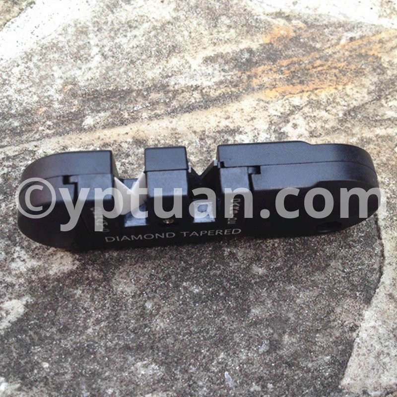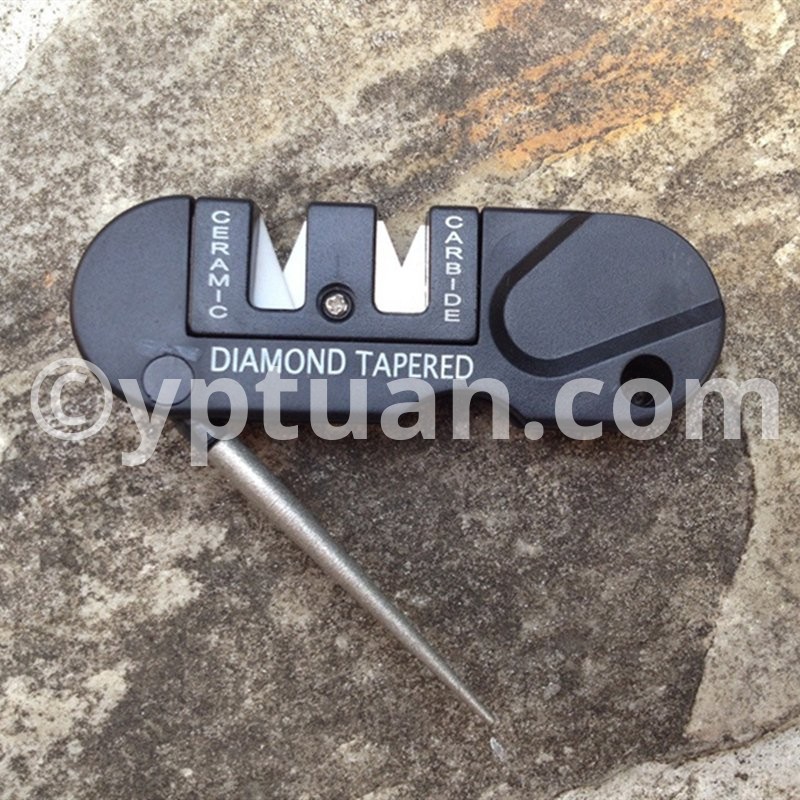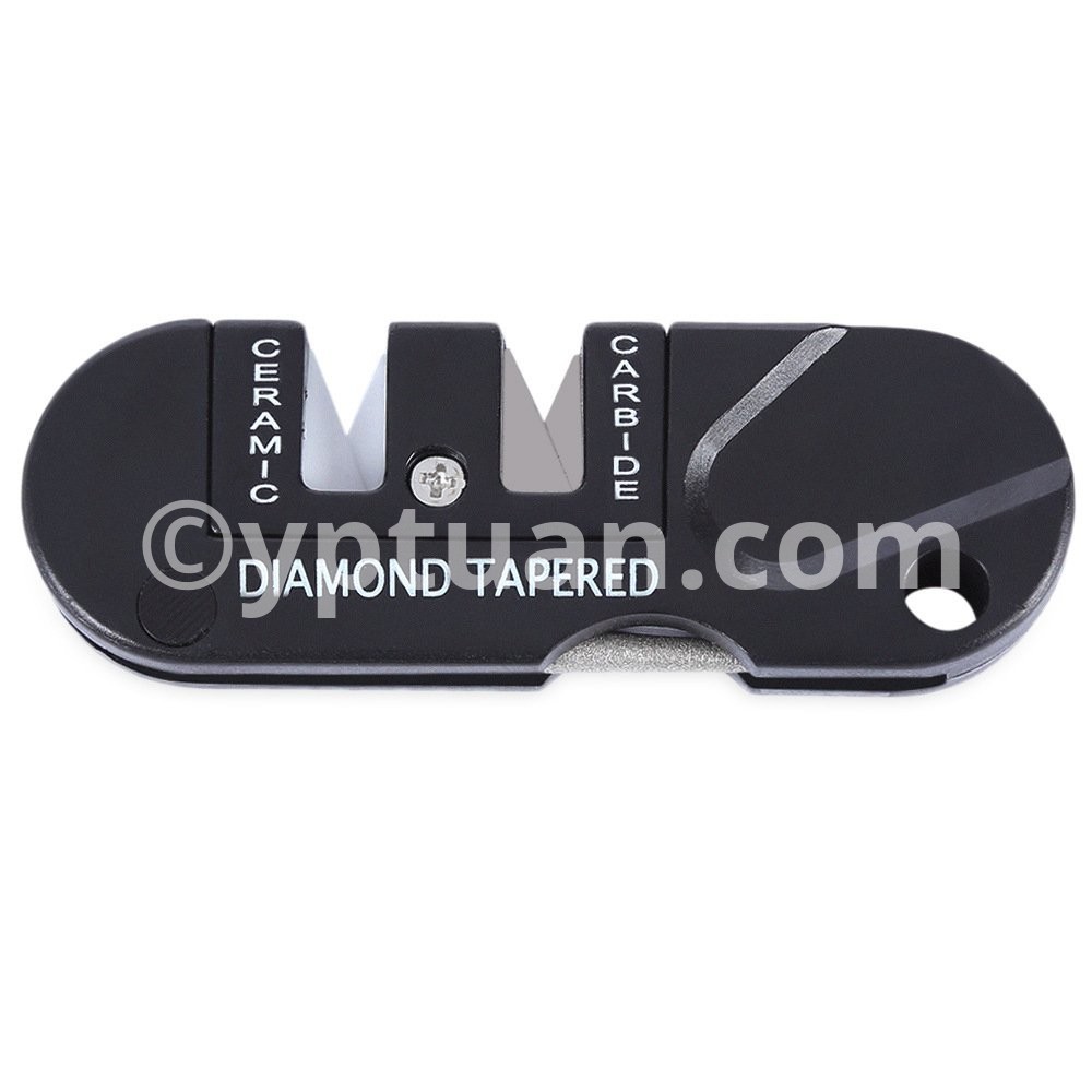 Features: 1. 3 in 1(Tungsten, Ceramic, Carbide) 2. Tungsten for rude grinding 3. Ceramic for precise grinding 4. Carbide rod for serrated blade grinding 5. With keychain hole, allow you easily attached this sharpener to keychain 6. Material: ABS Plastic + Tungsten Sharpener + Ceramic + Carbide rod 7. Size: 80*27*10mm(3.15*1.06*0.39'') 8. Weight: 27g Package Included: 1 * Sharpener