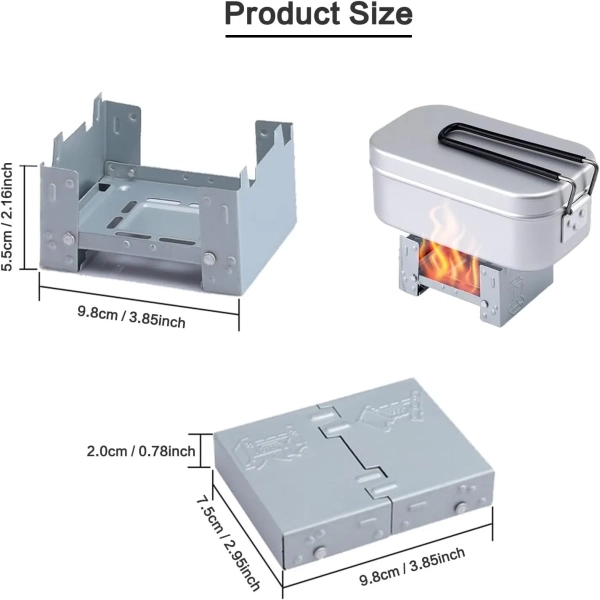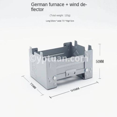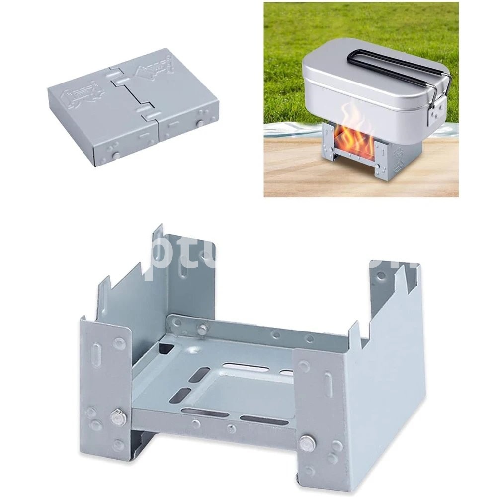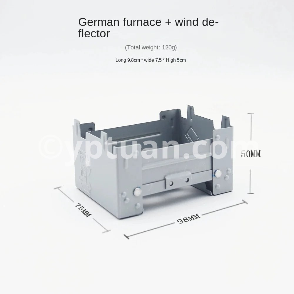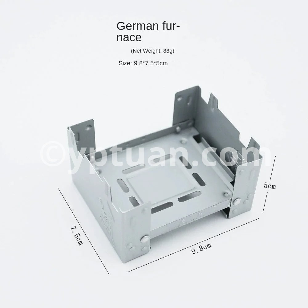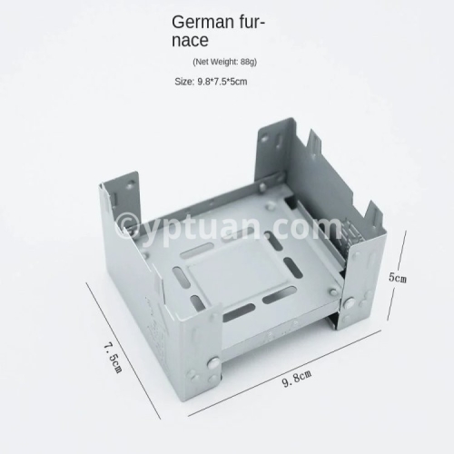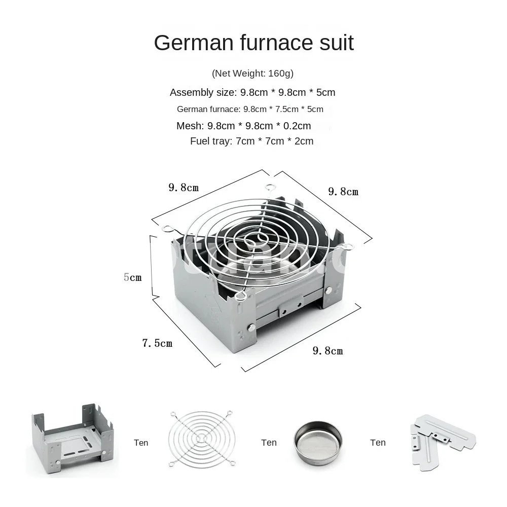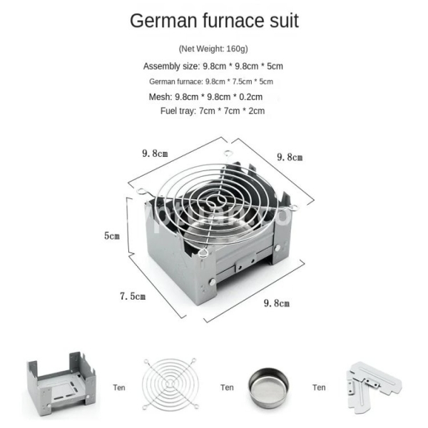 The camping stove can hold a weight of approx. 7 kg, can be attached to solid fuels, alcohol block, wax block, etc