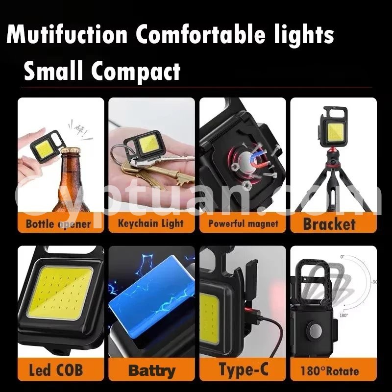 Portable Mini LED Flashlight USB C Rechargeable Keychain Light Multifunctional Work Light Outdoor Camping Lantern Fishing Torch