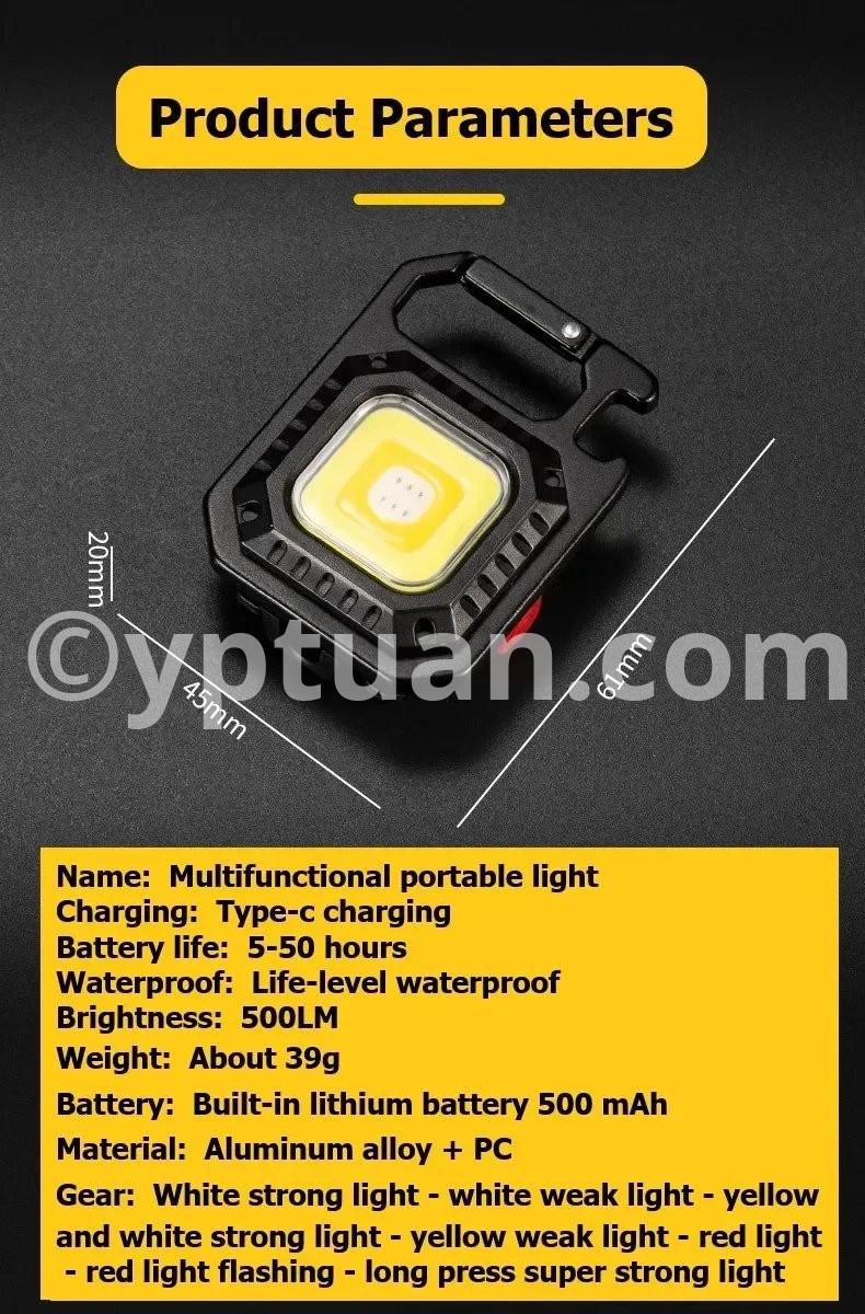 Illuminate your path with this compact COB Work Light, an essential addition to your outdoor toolkit for clear vision.