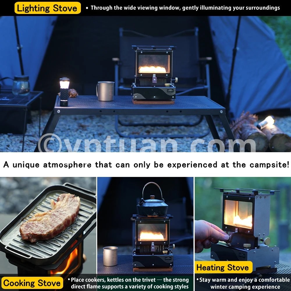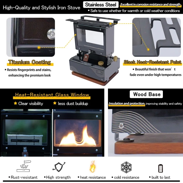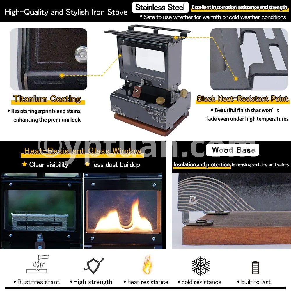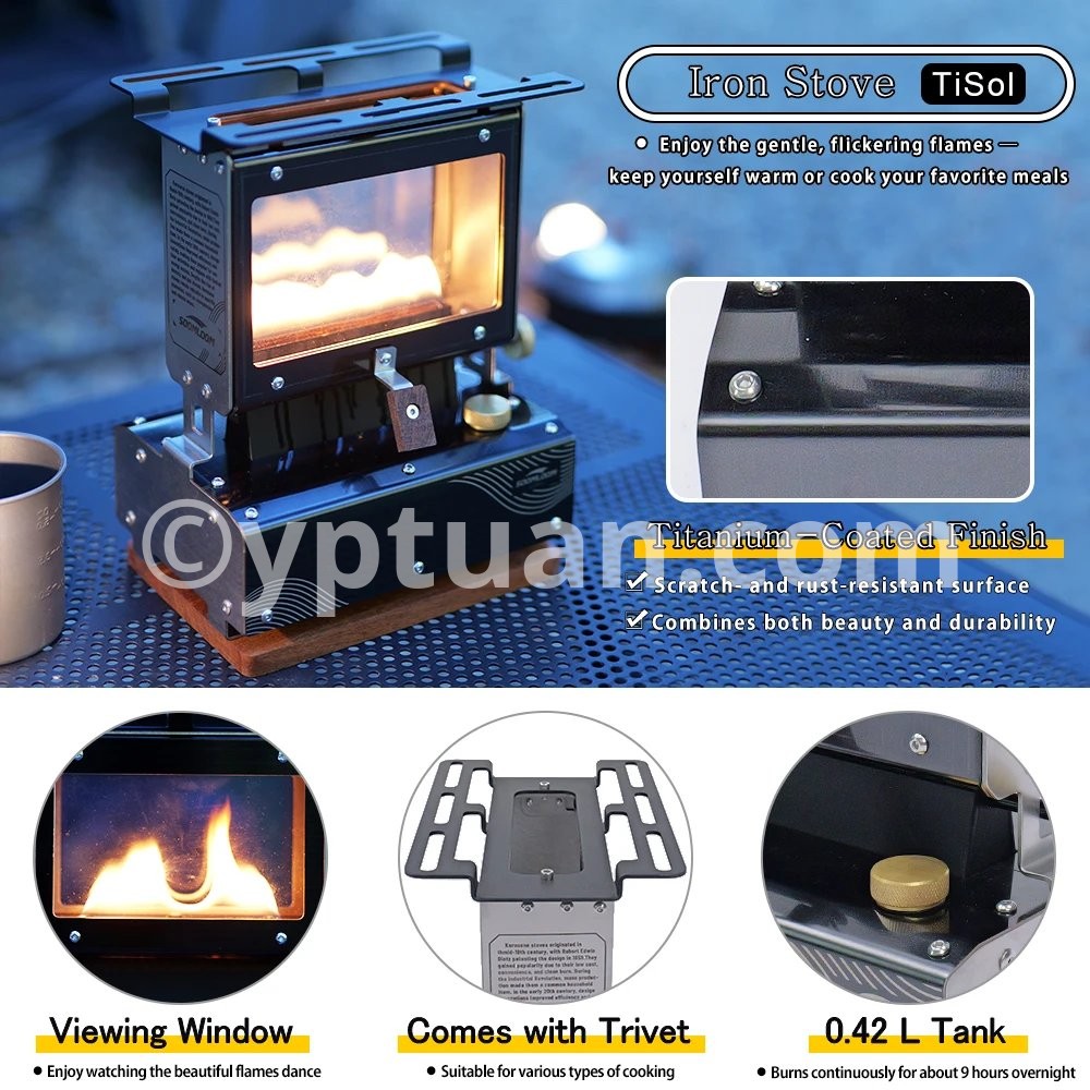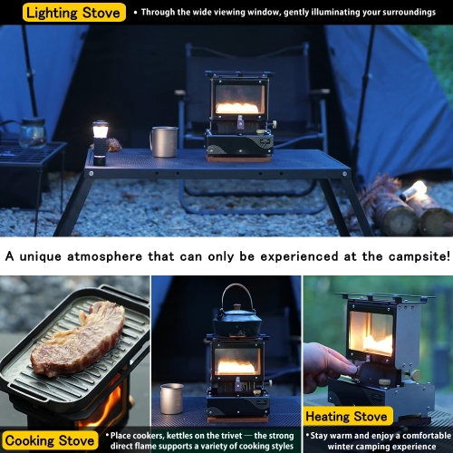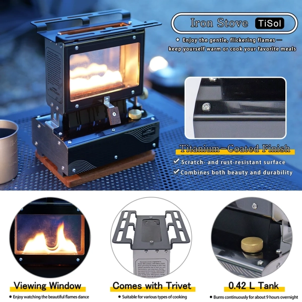 Soomloom Titanium-Coated Iron Stove, Portable Retro Iron Stove & Camping Lantern for Outdoor Heating, Lighting, Picnic