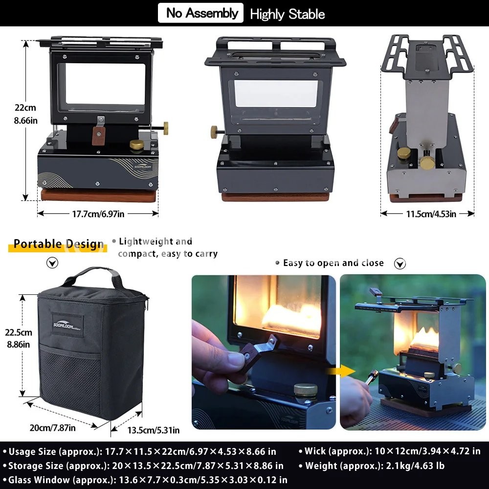 Soomloom Titanium-Coated Lamp Stove – Portable Retro Iron Stove & Camping Lantern for Outdoor Heating, Lighting, and Picnic Use