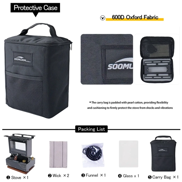 Stove ×1 Wick ×2 Funnel ×1 Glass ×1 Carry Bag ×1