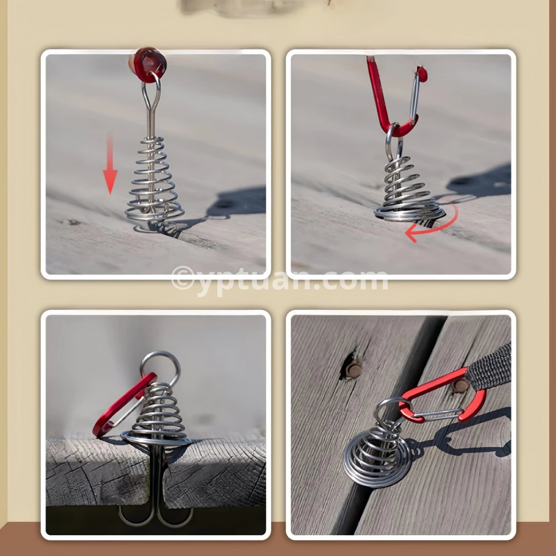 【 Strong stability and durability 】 - Made of high-quality aluminum alloy and stainless steel material, not easily deformed, corrosion-resistant, sturdy and durable 【 Anti slip and Adjustable 】 - Equipped with a spring buckle, it helps to better secure the tent stake and prevent ground nails from falling off or rotating due to the tent falling. Each one has double holes, making it very easy to lock the rope in place, adjust the length of the rope, and firmly secure the tent. Easy to install and disassemble - When installing a tent on wooden boards with gaps in the camping area, simply insert it into the gap and rotate it to secure it. The board will not be damaged during installation. Combining it with a climbing buckle will be more effective. [Used for decks and planks] - When camping outdoors, it can be used to install and secure tents and canopies on decks or planks. Package Includes: 1/5pcs x Octopus rope buckle