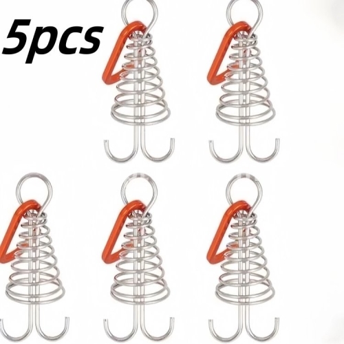 1/5pcs Outdoor Camping Octopus Rope Buckle Camping Deck Nail Stainless Steel Fixed Tent Rope Buckle Wooden Hook Spring Wind Rope