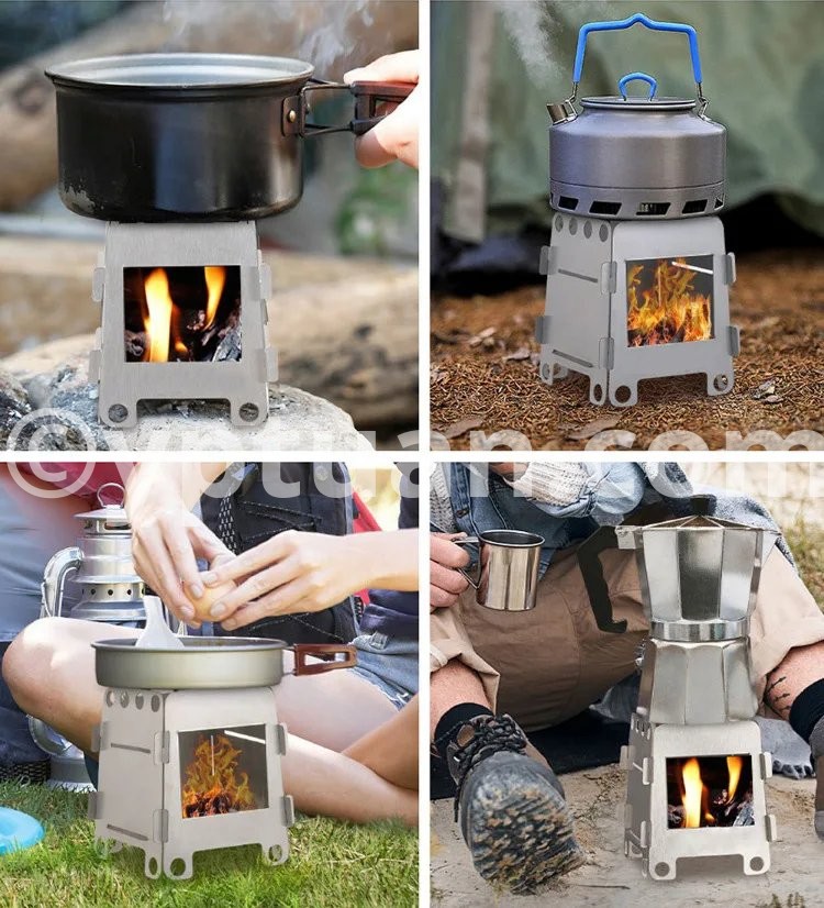 Camping Furnace Wood Stove Alcohol Stove Stainless Steel Portable Camping Stove Outdoor Stove Camping Equipment Cooking Hiking
