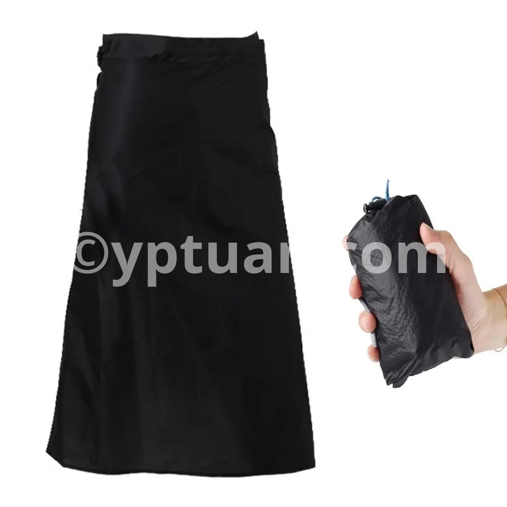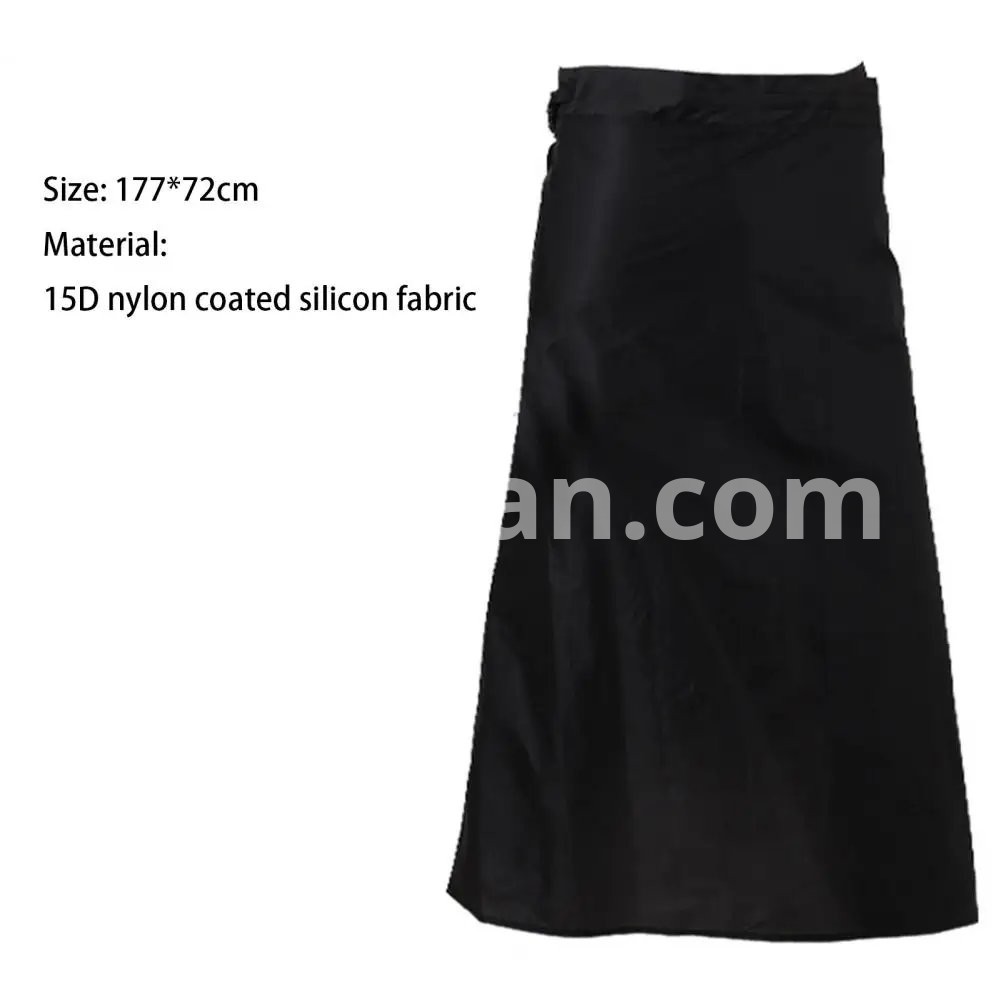 Rain Skirt Water-proof Anti-stain Accessory Windproof Raincoat Rain Liner for Cycling Description: There is no doubt that our product is convenient to use because it can be adjusted to adapt the waist circumference from 60cm to 100cm. And it has smooth surface and light weight because it is made of high-quality materials.It also has good waterproof, oil-proof, stain-proof performance. Due to the fine workmanship, our product can be used for a long time without being torn because the joints are use of waterproof glue, which it is reliable and compact. It is made from nylon, is durable to use. The length of the product is 177 cm, the width is 27 cm. Suitable for outdoor camping, mountaineering, etc. Item Name: Rain Skirt Material: Nylon Features: Fine Workmanship, Reliable, Smooth Surface Color: White, Sky Blue, Black Size Details: 177cm x 27cm/69.69' x 10.63' (Approx.) Notes: Due to the light and screen setting difference, the item's color may be slightly different from the pictures. Please allow slight dimension difference due to different manual measurement. Package Includes: 1 x Rain Skirt 1 x Storage Bag